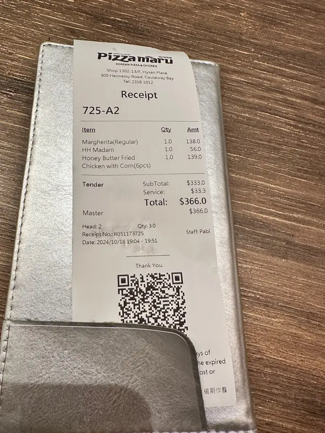 上扶手電梯去到希慎廣場13樓就會見到pizza maru,有啲位會喺餐廳出面🤪 我哋晚市去到,鋪頭都幾熱鬧,要等一陣先有得入去🥳 但枱同枱隔得唔算疏,少少近所以唔係坐得好舒服😂 要用英文落單🫡蜂蜜牛油炸雞配粟米燒 ($139/ 6塊)蜂蜜牛油炸雞一上枱,同粟米放埋一齊令成個賣相吸引左,但睇得出炸雞好乾身🤫咬落去外皮炸得脆,但只有表皮有味粉,內裡雞肉調味淡咗啲,肉汁近乎0🙂‍↔️蜂蜜牛油粉甜甜地,薄薄灑係炸雞上面,味道 OK ,但食多幾件有啲單調。粟米燒炭燒過有陣焦香,粒粒分明🫨 韓式海鮮炒年糕 (辣醬) ($123)韓式海鮮炒年糕賣相感覺味道好淡,而年糕條同海鮮同海鮮嘅分量都ok😬年糕唔可以話係十分煙韌有嚼勁,同坊間嘅都差不多👌🏻雖然整體都比較水,但味道微甜微辣,適合大部分香港人口味 。海鮮有蝦、魷魚同青口,要有嘅海鮮都比到👌🏻無乜回味嘅感覺,下次想食韓國年糕嘅話未必會再選擇呢到🙂‍↕️Pizza Maru 嘅蜂蜜牛油炸雞同韓式海鮮炒年糕賣相唔差,但炸雞只有表皮有味,炒年糕水水地,成餐普通咗啲,無乜驚喜🫨 我地冇叫到佢最出名個pizza,可能有機會會好食啲🤔 價錢偏貴,性價比一般查看更多