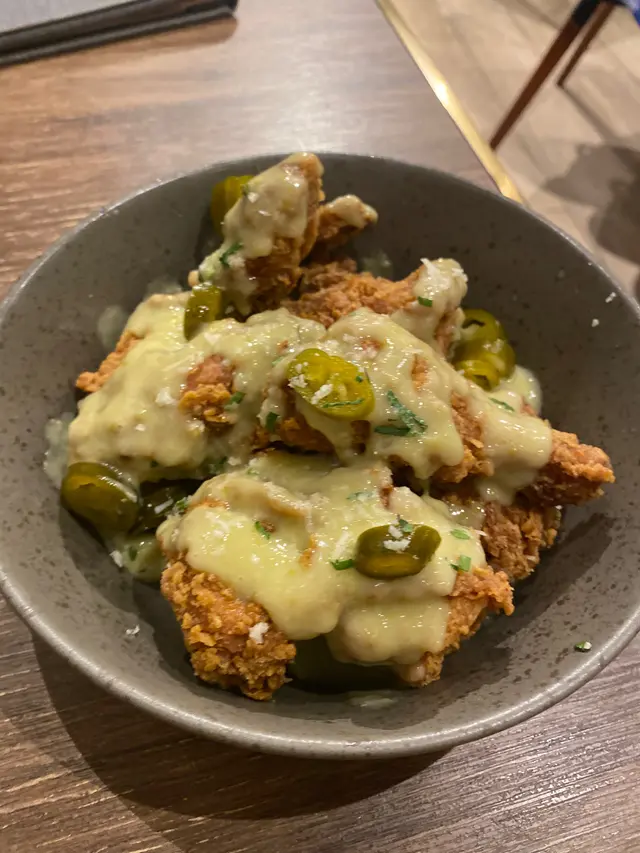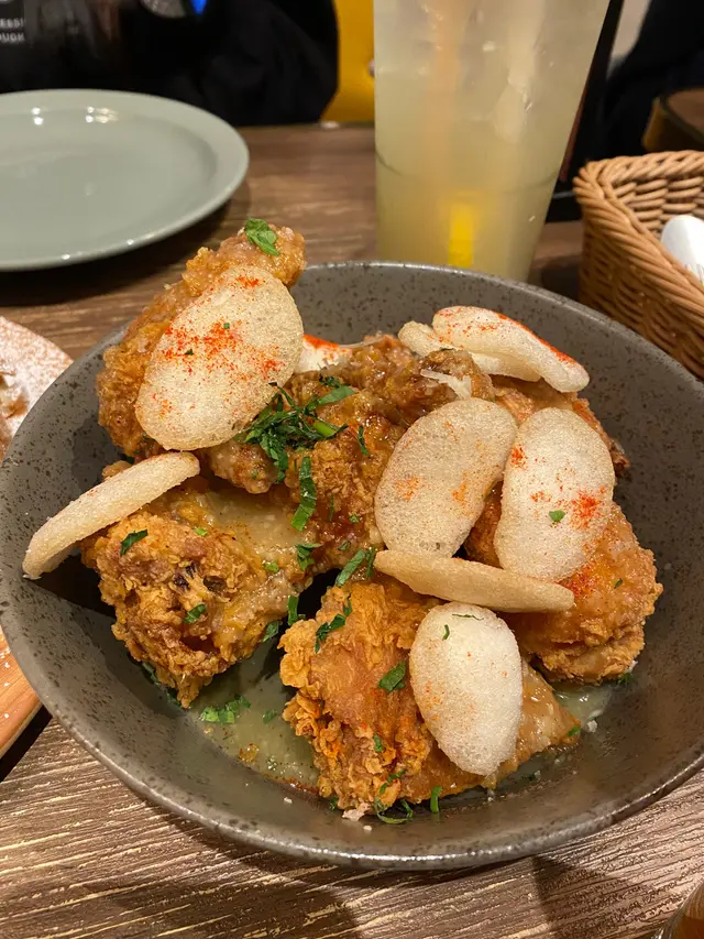 朋友幫我慶祝生日,甘我就揀左呢間食,平時都係午餐黎食,好想食佢晚餐好耐.因為一直想試佢個招牌pizza,試過4-5次,都冇機會食到佢個厚身pizza.我地係17:00就去餐廳,所以唔洗等,但有時間限制,約90分鐘.我地3個都叫Mango grapefruit ade,味道清新又帶果香,融合芒果甜蜜和柚子微酸,通常帶微微氣泡感,喝來酸甜解渴又不膩另外肉飛魚子意粉,口感豐富,蟹肉鮮甜嫩滑,飛魚子帶微微脆口和濃郁鮮味,醬汁通常以牛油或忌廉調配,香濃又帶點檸檬清新感,有層次.蒜香甜辣炸雞配炸蓮藕片,佢個炸蓮藕真係好出色,香脆清爽,至少係出面未試到過,加上蒜香甜辣炸雞外酥內嫩,醬汁甜辣帶蒜香,兩者搭配超讚!反而我最期待的烤牛肉pizza,沒有想像的甘好食,芝士拉絲唔多,餅皮偏硬,牛肉有點乾柴,整體一般查看更多