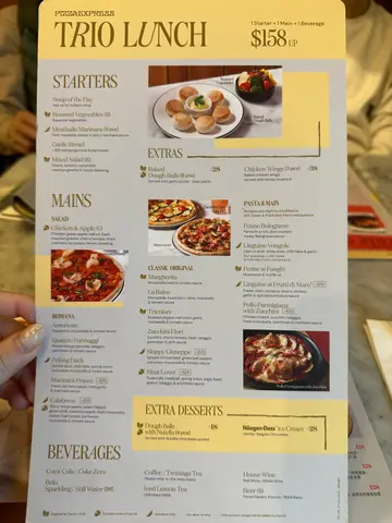 系上水广场的Pizza Express 食晚饭,Book左8:30半价优惠(+2杯正价饮品) ,点左四重芝士薄饼同海鲜意粉,感觉比想像中好,食物质素有惊喜。餐厅坐得舒服、轻松气氛,适合同朋友或家人聚餐。本身钟意食芝士,叫左个芝士四重芝士薄饼。薄饼用薄底,烤得香脆,上面有四款芝士(Mozzarella、Gorgonzola、Parmesan 同 Fontal),入口浓香四溢,芝士拉丝效果一流,咸香中带点 Gorgonzola 嘅微辣,食落好满足!虽然芝士味浓,但唔会太腻,份量啱晒两人分享。海鲜意粉都好好食,意粉煮得弹牙、海鲜有大虾、青口、鱿鱼同蚬,全部新鲜好食,配上白酒番茄酱汁,酸甜中带海鲜鲜味,酱汁浓稠得宜,挂满每条意粉,好开胃!饮品点了柠檬茶,可食无限refill。晚上8:30,少人,上菜速度快。餐厅干净企理,座位安排舒适,枱面同餐具都干净。人均约 HKD 150-200,薄饼同意粉嘅食材同质素对得住价钱,喺商场西餐厅黎讲,CP值唔错。…查看更多