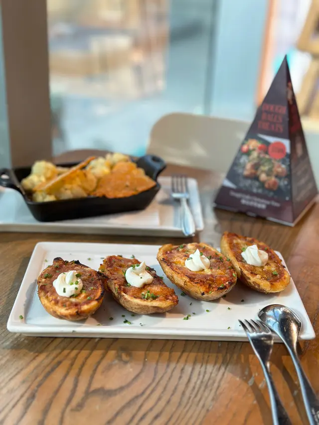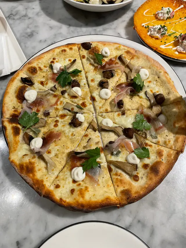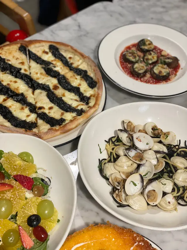 係上水廣場的Pizza Express 食晚飯,Book左8:30半價優惠(+2杯正價飲品) ,點左四重芝士薄餅同海鮮意粉,感覺比想像中好,食物質素有驚喜。餐廳坐得舒服、輕鬆氣氛,適合同朋友或家人聚餐。本身鍾意食芝士,叫左個芝士四重芝士薄餅。薄餅用薄底,烤得香脆,上面有四款芝士(Mozzarella、Gorgonzola、Parmesan 同 Fontal),入口濃香四溢,芝士拉絲效果一流,鹹香中帶點 Gorgonzola 嘅微辣,食落好滿足!雖然芝士味濃,但唔會太膩,份量啱晒兩人分享。海鮮意粉都好好食,意粉煮得彈牙、海鮮有大蝦、青口、魷魚同蜆,全部新鮮好食,配上白酒番茄醬汁,酸甜中帶海鮮鮮味,醬汁濃稠得宜,掛滿每條意粉,好開胃!飲品點了檸檬茶,可食無限refill。晚上8:30,少人,上菜速度快。餐廳乾淨企理,座位安排舒適,枱面同餐具都乾淨。人均約 HKD 150-200,薄餅同意粉嘅食材同質素對得住價錢,喺商場西餐廳黎講,CP值唔錯。…查看更多