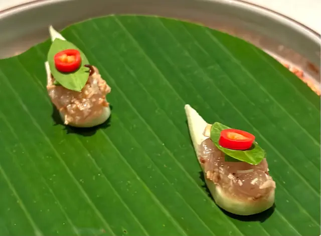 今日趁住慶祝生日想食返餐Fine Dining 🎂 平時食開歐洲菜多但係私心都係鍾意食泰國菜🇹🇭所以特地簡左呢間黎慶祝🪅 味道方面有水準烹調方式都睇得出係Classic既法國料理手法🇫🇷 技巧同手法係有嘅但係個人覺得亞洲味道都係地道既煮法更加啱我味蕾😅 另外一個硬傷係餐廳空間比較細🫢枱同枱之間嘅距離欠缺空間感🫢 長梳化俾我嘅感覺似係樓上Cafe多過Fine Dining🌝 味道質素係合格嘅不過喺泰國同拎價錢會食到更高的質素⭐️ Shima Aji Ma Hor 🍍本身係泰式嘅小食用豬肉配上水果一齊食🍉今次換上青木瓜同埋鰝鰺💚 有種獨特嘅清甜但係同豬肉唔係特別夾⭐️ Truffle Kanom Krok 🍄街頭嘅椰子脆餅配上松露🖤感覺上Elevate左但係松露嘅味道有點Overpowering😉⭐️ Nam Jim Seafood 🦪Gillardeau生蠔果然新鮮有佢嘅水準🌊 配上蕃茄嘅酸甜同埋Horseradish既刺激感🍅好有刺激味蕾既感覺⭐️ Larb 🐚本身係香葉炒肉碎嘅口味🫛Translate左去帶子身上🩵個人覺得帶子應該更適合Delicate既口味⭐️ Tom Yum Goong 🥘經典嘅冬陰功配上牡丹蝦不得不讚鮮度好高肉質好鮮嫩🦐 口味比較溫和恰到好處🌶️ 自家製既Brioche配上辣椒牛油都好配合🥐⭐️ Tom Kha 🐟用椰汁雞湯嘅煮法配上魚🥥 南薑同香茅嘅味道好濃郁🫚香氣足夠但係醬汁同魚肉唔係好融洽🥹⭐️ Neua Gor Lae 🥩用和牛配上咖喱嘅調味好有新鮮感🎨和牛嘅烹調不錯留住肉汁🔥 咖哩口味有層次但稍嫌偏鹹🌿⭐️ Gaeng Bai Cha Plu 🦞龍蝦嘅肉質無可挑剔🧡 黃咖喱嘅香氣同樣好配合☺️ 唯獨係香料同蒜頭嘅份量偏多有點影響口感🧄⭐️ Wan Yen 🍧用上石榴汁配上杏仁山竹嘅刨冰甜品🥰口味好正宗同我喺泰國食到嘅一模一樣🏖️酸甜度適中好有地道感覺好有亮點🩷⭐️ Lam Yai 🍰好有法式現代感嘅賣相但係配上龍眼同埋椰子嘅口味😚仲想泰式嘅材料但係口味有法式嘅細緻唔會過甜🤩 加上Thai Whisky點綴好有特色🥂⭐️ Mignardises 🍬飯後嘅小點好有泰國傳統甜品既風味🍭細緻但係有心思…查看更多