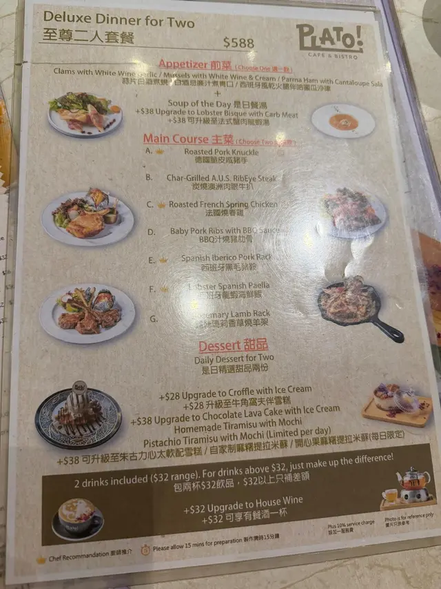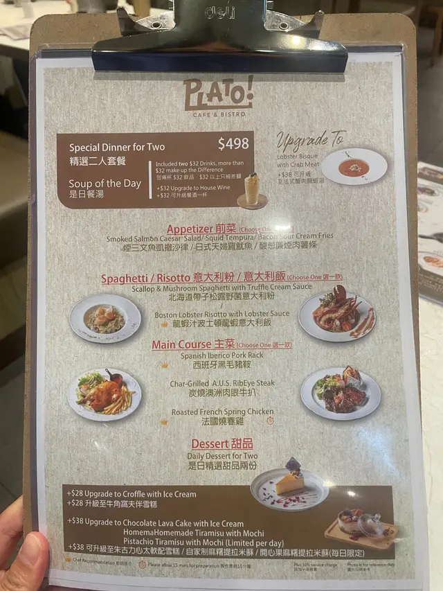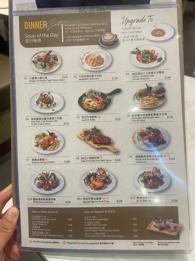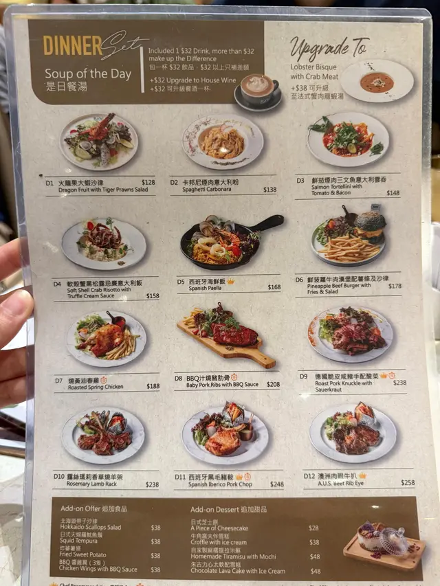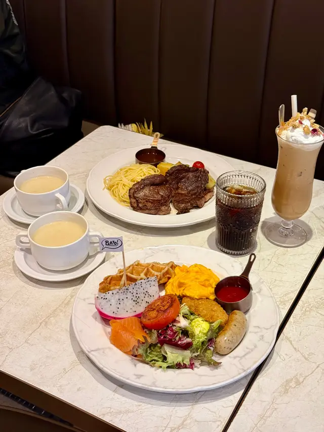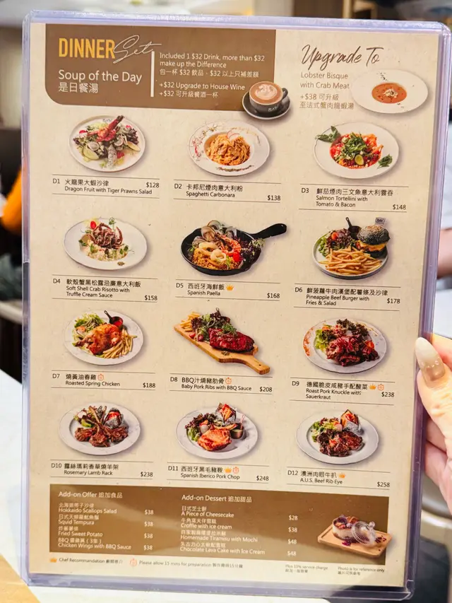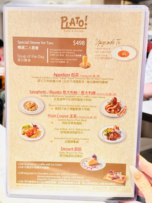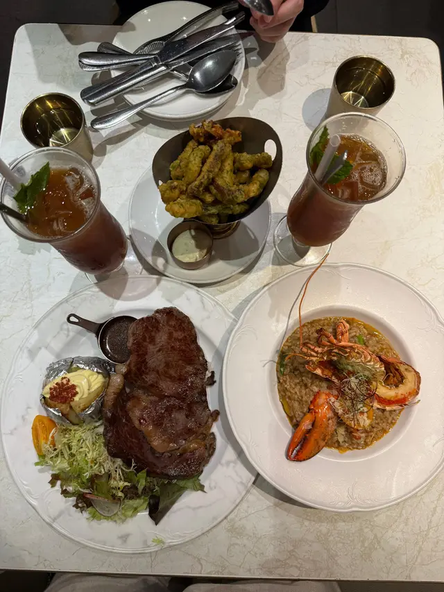 佐敦中附近向來多美食, 今次黎左呢間西餐小店食飯~精選二人套餐法式蟹肉龍蝦湯有一條條的蟹肉絲, 且有好濃郁的龍蝦湯味~喝下去creamy易入口是日餐湯(蘑菇湯)喝下去有粒粒蘑菇🍄🟫也是挺creamy的~煙三文魚凱撒沙律🥗煙三文魚有肥美的魚油香沙律🥗新鮮爽脆,放上麵包糠及淋上Caesar汁尤其fresh!龍蝦汁龍蝦意大利飯龍蝦肉新鮮彈牙,仲配上蟹鉗一齊食啖啖肉非常滿足😌而每一口意大利飯充滿著龍蝦汁的鮮味絕對係滿滿的幸福感☺️西班牙黑毛豬鞍架豬鞍新鮮嫩滑,基本上不用蘸任何醬汁,便可吃得出豬肉鮮味旁邊仲有焗薯仔🥔再放上沙律汁及脆煙肉澱粉質雖然比較多,但調味的確無得彈!牛角窩夫(1 個)伴雪糕窩夫帶有牛角包🥐嘅鮮味~焗得好香脆表面再放上忌廉及雲尼拿雪糕🍦有冰火二重奏的享受芝士蛋糕芝士🧀味濃郁,而且吃下去不會漏,甜度剛剛好非常適合吃不到太甜的朋友~抹茶鮮奶 (熱, 少甜)抹茶🍵味很濃郁,口感好順滑易入口!柚子檸檬梳打 (少冰, 少甜)柚子味豐富,梳打水喝下去舒暢爽快~在炎炎夏日下,喝一口非常暢快!…查看更多
