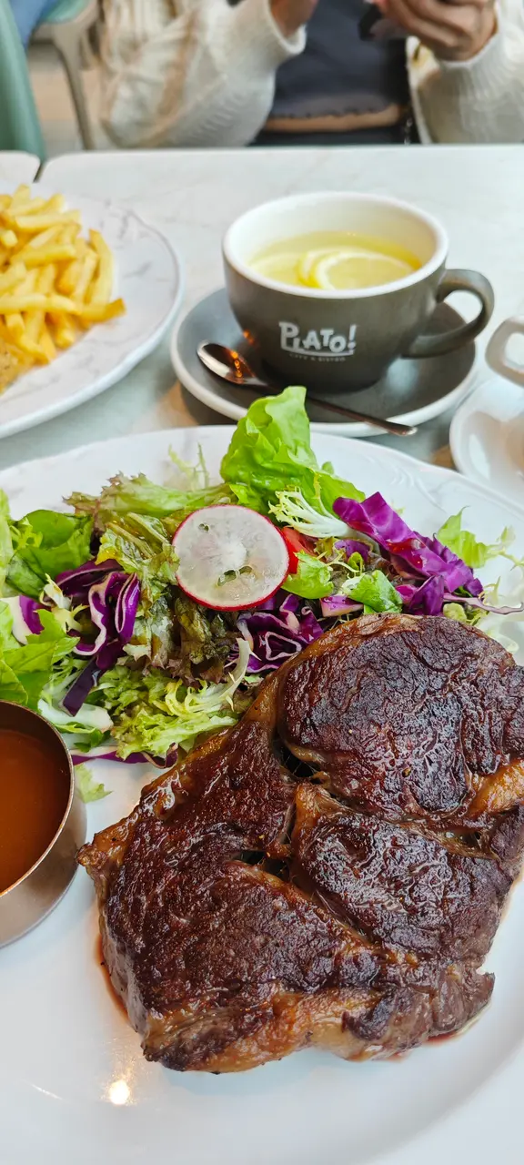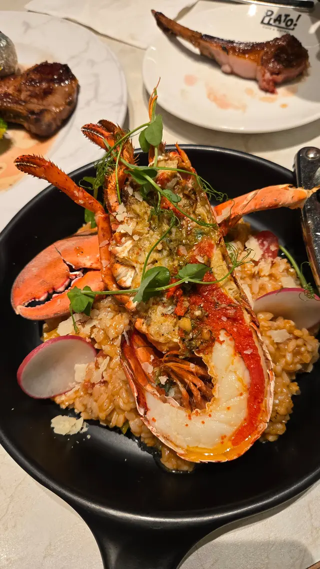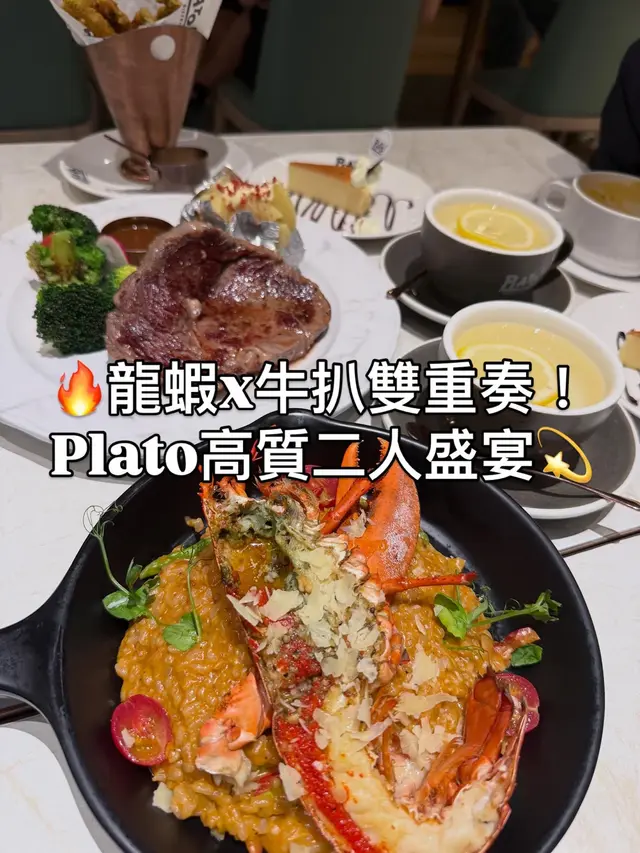 自從啟德站開通後,除了去Airside及鄰近的幾個商場外,原來去新蒲崗Mikiki商場亦都十分方便,由Airside 的2樓天橋連接到Mikiki,步行幾分鐘已經可以到達,非常方便而且靜中帶旺,亦匯聚多間人氣餐廳,今次去到主打歐陸西餐的〔Plato Cafe & Bistro〕,除了有慢煮安格斯牛扒及多款特色意粉,亦有套餐可以選擇。店內裝潢以簡約時尚風為主,舒適的氛圍,卡位梳化座位舒適,高樓底配以落地玻璃窗,環境寬敞舒適,適合悠閒享受日式輕食與咖啡文化。〔精選二人套餐〕(HK$428)【是日精選甜品 - 芝士蛋糕】 入口芝士口感綿密,散發濃香的芝士味道,味道不錯。【自家製開心果麻糬提拉米蘇】(HK$28)面層鋪了滿滿的開心果碎,提拉米蘇內有麻糬及沾了咖啡的蛋糕,入口質感軟滑又口感十足,味道層次豐富。【龍蝦汁波士頓龍蝦意大利飯】有半隻龍蝦肉肉質厚實,肉都很容易離殼,而且啖啖肉有龍蝦膏,意大利飯口感濕潤吸收了不少龍蝦汁,口味不太重感覺很健康。【露絲瑪莉香草燒羊架】羊扒叫了七成熟,羊扒大大件很厚身,入口肉質軟腍不會太乾太硬,連同配菜烤焗薯及西蘭花吃,味道剛剛好,而且有燒汁蘸點,有少少羊羶香味亦不會太重油膩感。【風乾火腿伴哈密瓜沙律】清甜的哈密瓜配上風乾的火腿,更有沙律菜及沙律醋點綴,是很開胃清新的前菜。【是日餐湯】南瓜湯口感綿密很濃郁。…查看更多