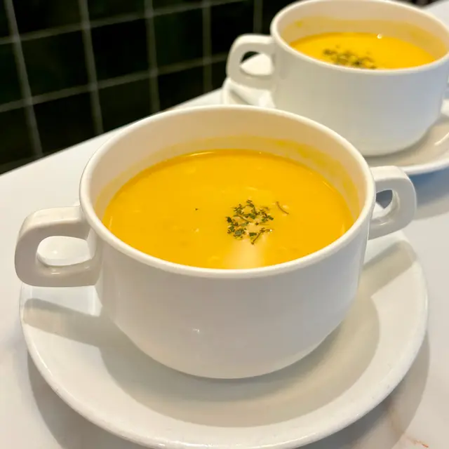 餐汤 - 忌廉磨菇汤,十分浓郁,菌类搅碎,更易入口。