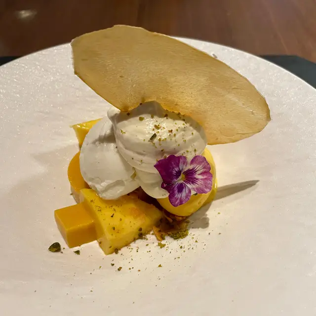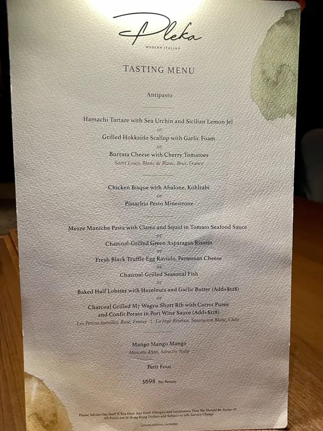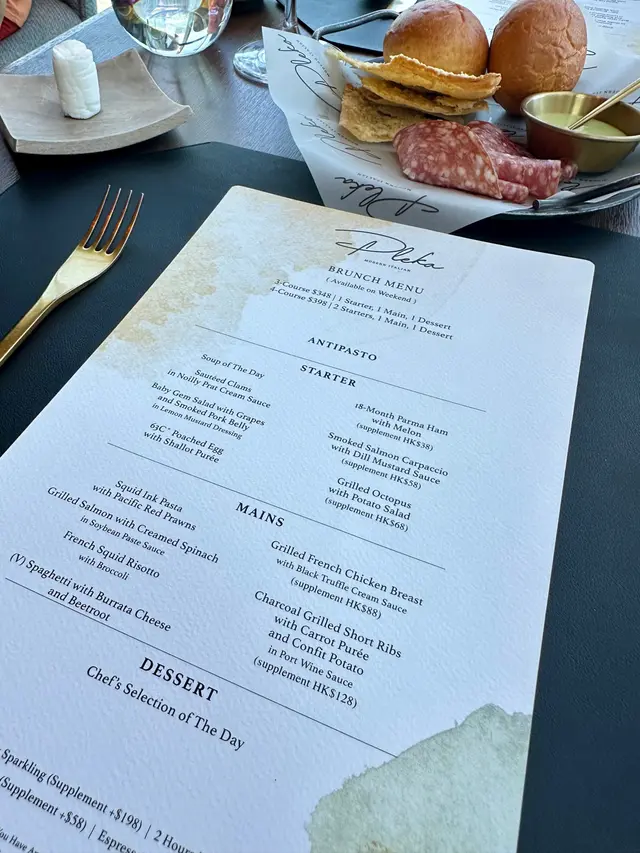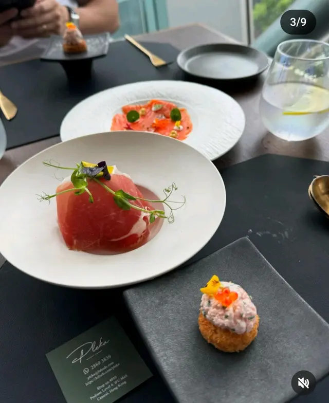 位於中環ɪꜰᴄ的「ᴘʟᴇᴋᴀ」是一家新派意日融合餐廳,由本地著名西廚劉銘佳ᴋᴇɴ ʟᴀᴜ主理。這是他繼西九文化區ᴘᴀɴᴏ及尖沙咀ᴘᴀʟᴄᴏ後,第三間坐擁維多利亞港景色的餐廳。劉師傅擁有超過30年廚藝經驗,曾任職半島酒店多間知名餐廳,精通意大利、法國、日本等多國料理。他擅長將意大利傳統風味與多元菜系結合,在ᴘʟᴇᴋᴀ推出創意十足的意日菜式。晚市提供ᴛᴀꜱᴛɪɴɢ ᴍᴇɴᴜ,價格由$798起。.餐廳位於ɪꜰᴄ四樓平台,環境以高樓底與落地玻璃窗為特色,維港景色一覽無遺。室內設計簡約現代,搭配柔和燈光,營造舒適氛圍。開放式廚房讓人可觀察師傅烹調過程,增添用餐趣味。戶外露台則提供開闊空間,適合搭配美酒放鬆身心。整體佈置不過分奢華,卻在細節中透出用心。.ᴅɪɴɴᴇʀ ᴛᴀꜱᴛɪɴɢ ᴍᴇɴᴜ 💲798/ᴘᴘ這次選擇的是💲798的ᴛᴀꜱᴛɪɴɢ ᴍᴇɴᴜ,並加選💲268的三杯酒搭配。餐前小吃以小吞拿魚撻開場,吞拿魚碎用麻油、醬油等調味,質地細膩,表面點綴金箔增添視覺效果,另外麵包籃則搭配蒜蓉麵包與薄脆片,口感豐富。.✿ ʜᴀᴍᴀᴄʜɪ ᴛᴀʀᴛᴀʀᴇ ᴡɪᴛʜ ꜱᴇᴀ ᴜʀᴄʜɪɴ ᴀɴᴅ ꜱɪᴄɪʟɪᴀɴ ʟᴇᴍᴏɴ ᴊᴇʟ前菜有三款選擇,選了以油甘魚製成他他,鮮嫩魚肉搭配馬糞海膽的濃郁鮮味,底層西西里檸檬凝膠帶來清新酸度,層次分明。.✿ ɢʀɪʟʟᴇᴅ ʜᴏᴋᴋᴀɪᴅᴏ ꜱᴄᴀʟʟᴏᴘ ᴡɪᴛʜ ɢᴀʀʟɪᴄ ꜰᴏᴀᴍ另一款前菜選擇了香煎帶子。以北海道帶子為主角,表面煎至微焦,加上的蒜香泡沫輕盈而不搶味,簡單卻有質感。.✿ ᴄʜɪᴄᴋᴇɴ ʙɪꜱQᴜᴇ ᴡɪᴛʜ ᴀʙᴀʟᴏɴᴇ, ᴋᴏʜʟʀᴀʙɪ 湯品部分有兩款選擇。必試以濃郁雞湯為基底,再席前倒進薄切鮑魚片上,搭配球莖甘藍增添清脆口感,味道溫和協調。.✿ ᴘɪꜱᴛᴀᴄʜɪᴏ ᴘᴇꜱᴛᴏ ᴍɪɴᴇꜱᴛʀᴏɴᴇ另一款湯則以開心果為主軸,湯中加入蔬菜粒,有點像羅宋湯一樣,但帶有淡淡堅果香氣,頗為清爽。.✿ ᴄʜᴀʀᴄᴏᴀʟ-ɢʀɪʟʟᴇᴅ ꜱᴇᴀꜱᴏɴᴀʟ ꜰɪꜱʜ 主菜有多款選擇,根據餐廳推介選擇了炭燒烤魚。這款主菜會選用當天時令魚類,當日選用了馬友魚。炭烤保留魚肉嫩滑質地,表面微焦帶煙燻香,搭配簡單調味突出鮮味。.✿ ᴄʜᴀʀᴄᴏᴀʟ ɢʀɪʟʟᴇᴅ ᴍ7 ᴡᴀɢʏᴜ ꜱʜᴏʀᴛ ʀɪʙ ᴡɪᴛʜ ᴄᴀʀʀᴏᴛ ᴘᴜʀᴇᴇ ᴀɴᴅ ᴄᴏɴꜰɪᴛ ᴘᴏᴛᴀᴛᴏ ɪɴ ᴘᴏʀᴛ ᴡɪɴᴇ ꜱᴀᴜᴄᴇ (ᴀᴅᴅ+$128)另一主菜選了ᴍ7和牛肋骨,炭烤至外層焦香,內裡軟嫩多汁,胡蘿蔔泥細膩順滑,波特酒醬汁濃郁微甜,與慢煮馬鈴薯相得益彰。.✿ ᴘɪɴᴀ ᴄᴏʟᴀᴅᴀ甜品以椰子雪糕為主體,搭配椰子泡沫,質地輕盈,點綴菠蘿乾片與少許鮮菠蘿,酸甜與椰香平衡,作為結尾清新不膩。.整體而言,這次用餐體驗以食材新鮮與意日融合為亮點,菜式從前菜到主菜再到甜品,搭配合理且各有特色。酒搭配選擇恰當,與菜式風味互補。環境與服務也令人滿意,適合追求精緻飲食與海景的食客前來品嚐。…查看更多