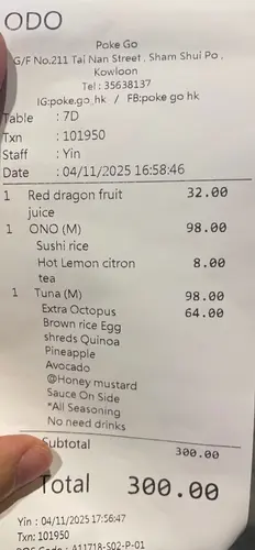 # 【食评】深水埗 Poke Go —— Chill 住食碗健康饭 星期五同老婆行到深水埗,见到呢间 **Poke Go**,外面招牌简简单单,入到去先发现环境几舒服,地方比想像大,枱凳阔落,唔会逼,好适合坐低慢慢食同倾下偈。 ---## 🍲 食物方面 ### 我嗌咗自选 Bowl ($118) 拣咗吞拿鱼做主角,再加枝豆、甜粟米同酸萝卜,酱汁就拣咗 **Nutty sauce**。 - 吞拿鱼够新鲜,切粒啱啱入口size; - 枝豆、甜粟米增加爽口感觉,酸萝卜又帮手解腻; - nutty sauce 香浓带少少坚果味,捞饭一流,完全唔觉单调; - 份量真系大碗到夸张,我都食到好饱。 ### 老婆嗌咗三文鱼 Set Bowl ($118) 入面有三文鱼、蟹柳、鸡蛋丝、青瓜: - 三文鱼肥美嫩滑,衬埋青瓜清清爽爽; - 蟹柳同鸡蛋丝令味道多咗几分层次,唔会成碗都得鱼; - 老婆话饭有啲多,自己食唔晒,但味道真系几合口味。 ---## 🍹 饮品 - **牛油果 Smoothie ($32)**:饮落浓稠,感觉似系用 oat milk blend,上面冇落太多糖,啱我哋口味,健康之选。 - **菠萝特饮 ($32)**:入口酸酸地,几醒胃,加埋干菠萝片装饰,都几有心思。 两杯都唔会太甜,饮完比起一般汽水清爽好多。 ---## 💰 价钱 埋单连加一 **$330**,一人一碗 poke bowl 加埋饮品。唔算超平,但以份量同配料质素嚟讲,性价比我觉得ok。 ---## ⭐ 总结 成体验感觉几好: - 环境舒服,唔迫人,坐得耐都无压力; - 食材新鲜,配搭多选择,酱汁同topping够特色; - 系健康又大碗嘅选择; - 唯一小小遗憾系价钱唔属于学生价,但以质素嚟讲值返晒。 👉 想食啲清新又唔heavy嘅晚餐,我觉得 **Poke Go** 绝对系好选择,尤其啱情侣/朋友坐低慢慢食慢慢倾。…查看更多