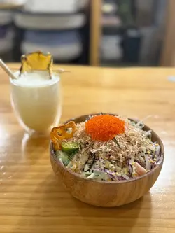 在深水埗這片喧囂的舊城街區,藏著一間質感小店「Poke Go」,而店內最令人驚豔的招牌菜「OHANA Salad」,正以純粹的自然風味,成為健康飲食愛好者的秘密基地。夏威夷靈魂 × 港式新鮮食材「OHANA」在夏威夷語中寓意「家人」,這道沙拉完美詮釋了主廚對食材的執著——每日的新鮮三文魚與吞拿魚,切成飽滿的骰子狀,搭配清甜芒果、牛油果、日本溫室青瓜,再撒上脆口紫菜絲與黑芝麻,最後淋上秘製柚子醋汁。魚生的油脂香、水果的酸甜、蔬菜的爽脆,層層堆疊出太平洋島嶼的清爽氣息,卻巧妙平衡了港人偏好的濃淡節奏。健身族與上班族的療癒首選有別於傳統Poke Bowl的厚重醬料,高蛋白魚生提供Omega-3脂肪酸,牛油果帶來優質植物脂肪,一份即能補足全天營養,難怪成為OL和健身人士的日常食堂。視覺與味覺的雙重衝擊這道沙拉更像一幅立體水彩畫——橘紅魚生、嫩綠蔬菜、金黃芒果在純白陶碗中綻放熱帶風情,隨手一拍即能點亮社交媒體。店內工業風裝潢搭配木系餐桌,讓人在粗獷水泥牆間感受一絲療癒禪意,繁忙中偷閒的儀式感油然而生。若想逃離深水埗的市井煙火氣,不妨走進Poke Go點一碗OHANA Salad。這裡沒有傳統輕食的寡淡妥協,只有對新鮮食材的極致追求——畢竟在夏威夷人的信仰裡,「OHANA」代表的不只是家人,更是生命中不可或缺的珍貴存在。…查看更多