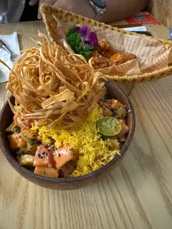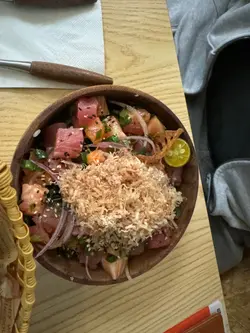 呢度嘅寿司饭同传统日式𠮶种唔同,系用咗夏威夷风格嘅Poke Bowl概念,配料自由搭,但今日重点推介两个隐藏食法:Shaka Sushi Rice 同 Mahalo Sushi Rice!首先讲Shaka Sushi Rice,基底系醋饭混咗少少寿司醋,冻冻哋几开胃。重点系佢嘅酱汁!本身已经有秘制酱油底,但记住叫店员加多啲酱,因为佢哋嘅特调酱汁带微微酸辣,捞埋三文鱼粒、吞拿鱼、蟹籽同青瓜,每一啖饭都挂满汁,又唔会太咸,食完成个饭都唔会腻!至于Mahalo Sushi Rice,更加系惊喜之作!佢嘅酱汁基底似系芝麻酱混咗啲烧烤酱,甜甜哋又有坚果香。强烈建议加多酱,因为佢嘅酱同饭上面嘅材料(例如牛油果、芒果、炸蒜)超夹,捞匀之后饭粒湿润得嚟仲保持到口感,仲会食到淡淡椰香,感觉好有热带风情!两个饭嘅配料都可以自己微调,但如果跟足店家预设搭配已经好完美。另外,佢哋嘅份量够大,女仔可能食唔嗮,男仔就啱啱好。拎到附近公园或者返office慢慢叹~ 总之,钟意浓味同酱汁控嘅,呢两款饭绝对系湾仔区必试!…查看更多