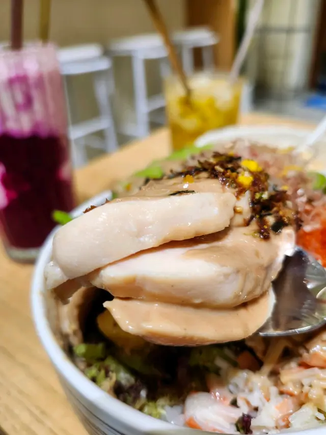 📍呢間成功打入「我最喜愛的夏威夷蓋飯」 推薦榜頭3位! 小店木系裝潢,座位空間闊落舒適,而且款式選擇唔單一。除咗夏威夷蓋飯,仲有乳酪碗同蛋白飲提供,仲細心幫你計好卡路里! 完全係減肥外食小幫手! 🔺如果唔想諗又想計好卡路里,餐廳都有配搭好的夏威夷蓋飯! 自選夏威夷蓋飯 (壽司飯配沙律菜) - 蛋白質: 原味慢煮雞胸- 如果想食濃味d就可以選擇麻辣味。好少見到會比一整塊咁多份量,雞胸肉經過慢煮方式烹調,肉質超級軟嫩。- 配料(選三款): 青瓜+蟹籽+蟹柳沙律- 估唔到會有蟹柳沙律! 蟹柳切成細絲,均勻地沾滿輕盈沙律醬。撈埋落蟹籽超級好食! 青瓜片新鮮爽脆,成個combination 健康又好食! 加多半份牛油果都係$18! - 自家製醬汁: 醋香果仁醬- 果仁醬夾雜不少堅果粒粒,由於加入少許醋的緣故,味道微酸感覺相對輕盈。Toppings: 木魚絲+日式飯素: 強烈推薦加入日式飯素!成個口感味道都level up🫣自選夏威夷蓋飯 (沙律菜)蛋白質: 三文魚有光澤好新鮮,朋友加多咗個八爪魚🦑,估唔到咁軟身一d都唔會韌。雖然就咁食會比較單一,所以留返d 醬汁沾醬食就最好食🙈配料(選三款): 青瓜+ 雞蛋絲+ 蟹籽! 蟹籽真係新鮮卜卜脆,額外加配菠蘿唔係罐頭貨,幾有誠意自家製醬汁: 自製醬油- 會相對清淡Toppings: 木魚絲+紫菜絲 🌀 穀麥脆脆希臘乳酪碗 Greek Yogurt超適合減肥人士食🙋🏻♀️ 有豐富的蛋白質同糖份比較低。我地揀呢款係加咗穀物脆脆同蜜糖,將蜜糖加入乳酪後,中和咗乳酪微酸味道✅ 估唔到有咁大碗,平時去超市買一盒都仰差唔多價錢🌀 紅火龍果希臘乳酪特飲凍 & 熱情果菠蘿梳打再次感到餐廳嘅誠意🫶🏼 真材實料📣 食到好多火龍果肉。熱情果菠蘿梳打落滿菠蘿+熱情果,仲有好多龍眼肉帶出少許甜味,並無額外添加糖架…查看更多