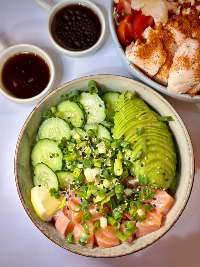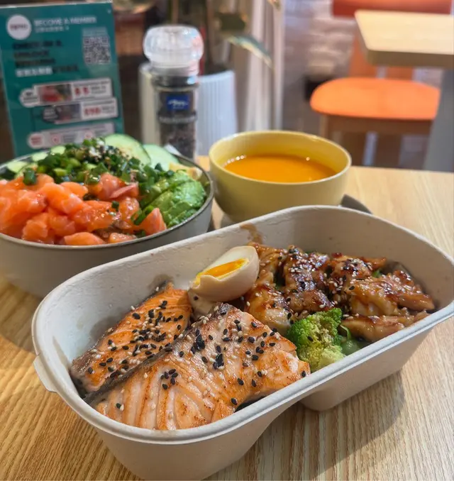 呢排勁熱有時真係冇乜胃口 想食啲凍凍地嘅嘢就揀左poke😛 之前喺上環食過原來希雲街附近都有✅ 啱晒好多朋友❣️Salmon the classic $118三文魚同牛油果嘅組合不會錯🥑🐟 整體係好Creamy充滿靚油脂😬加上啲青瓜解膩🥒配合佢哋嘅醬油調味已經好足夠👅仲可以揀一半沙律一半壽司飯 飽肚又健康🥗❣️照燒雞肉 三文魚柳 五款野菜另外仲有啲便當可以揀protein 雞肉同三文魚都想食就全都要啦🐓🐟三文魚柳兩件 用鹽輕輕調味一下 煎焗已經好食🐟🔥照燒雞唔係殘忍地比雞胸 而係雞髀肉🤣 照燒汁冇得頂 連帶埋啲菜都好好食😋鍾意佢有得揀野菜 有蓮藕荷蘭豆西蘭花青瓜 唔係就咁用水烚 食到豐富嘅調味食菜都好享受😚🥬🥦🥒🫛會跟一個南瓜湯 都幾甜 唔係加咗好多cream嗰種食到纖維🎃❣️紅火龍果希臘乳酪特飲 +$38香港都比較少可以飲到Yogurt drinks嘅地方✅呢個配搭好正 冇落糖嘅情況都係酸酸甜甜好開胃又涼爽🧋仲係extra source of protein🤣…查看更多