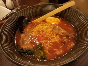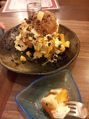 今日同粉丝喺呢头做完野~ 所以揾地方医医肚~~粉丝心思非常唔简单~拣左好耐先决定黎呢到~下午茶时段唔洗等位就入得~ D枱放得有密左少少 ~同隔离枱好冇距离,幸好枱櫈都算大张,感觉都坐得好舒服望下个餐牌~服务员话因而家系下午茶时段,出品有限,我地望完又望~先有决定~猪软骨蕃茄浓汤拉面 - 蕃茄浓汤唔算好浓,食得出系''开水''货式,出品一般~幸好唔会太咸~拉面本身就煮得淋左少少~加上我又食得慢~浸得更淋,所以更减份~猪软骨有两小件~好淋好有味~唔错~只系少左D~肥牛炒面 - 好大碟好劲份量~一D都唔欺场~浆汁炒至入味又干身~上枱热腾腾,肥牛系打边炉货式,真系好肥~!雪糕厚多士粒 - 成餐饭的主打~厚多士粒切到大大粒拎去炸再配合埋朱支力雪糕~对呢类甜品要求真系唔高~只要摆得好好睇睇靓靓地就可以了~师夫真系做到呢个效果~!一睇到就觉得好开心~~而且唔算好甜,感觉一D都唔肥腻!正~~又倾又讲都唔知时间过~服务员们唔会成日过黎打扰客人~感觉好好~最后餐饮我地照旧点左杯热柠系列完成今餐的句号总括黎讲..唔错的KILL TIME 好地方~!值得再去~! …查看更多