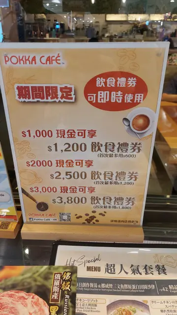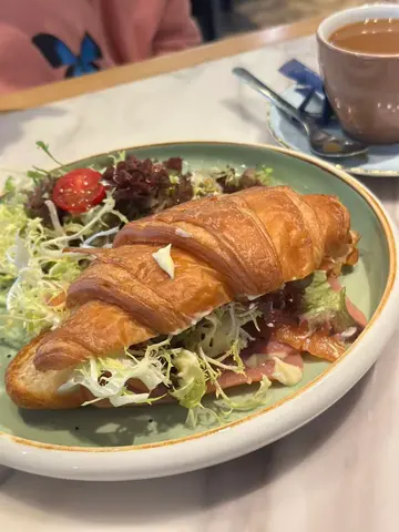 在荃湾想找个轻松位置吃早午餐,于是走进商场内的Pokka Café。主打轻食、咖啡与欧式面包,定位明确,适合想吃得如此的一派。店在百货千色店内,采速度明亮,座位以二人四人台为主,桌距尚可;翻台快。点单简洁,餐具与饮品先到,主食雅上台,节奏俐落。— 火腿牛角包佐野菜沙拉:牛角包外层脆口、内里初始化松软层次,奶油香不会太重。夹上火腿与生菜,外观感觉;配上侧边野菜沙拉,酸甜酱汁平衡油脂,整体挺适合早午餐。— 烟鲑鱼:片厚薄适中,香偏咸内敛,单吃或搭配沙拉都顺口,不会遮挡其他味道。—热咖啡:奶香比烘焙香更突出,入口顺滑,温度控制得宜,不易变苦。属于「易饮耐喝」型。行为早午套餐,结帐约港币82.5元(含服务费)。以商场咖啡店定位著眼,价格合理。表现稳定恰到好处:环境舒适、出品干净俐落,善于做「轻食无负担」的那种满足。若想找重口或简单此记忆点的菜肴,这里不是主打;但想在荃湾逛街期间坐坐、吃得简单舒适,这家可以收藏。…查看更多