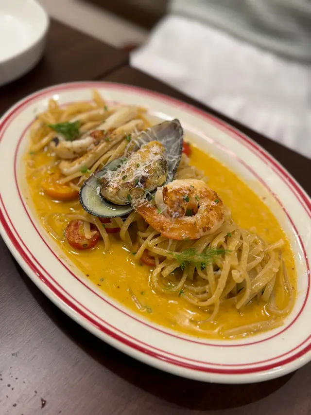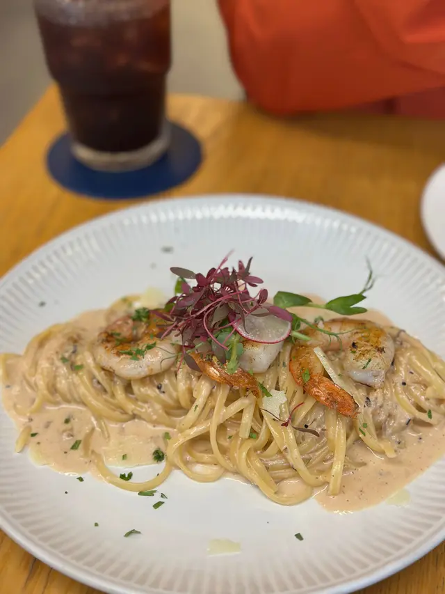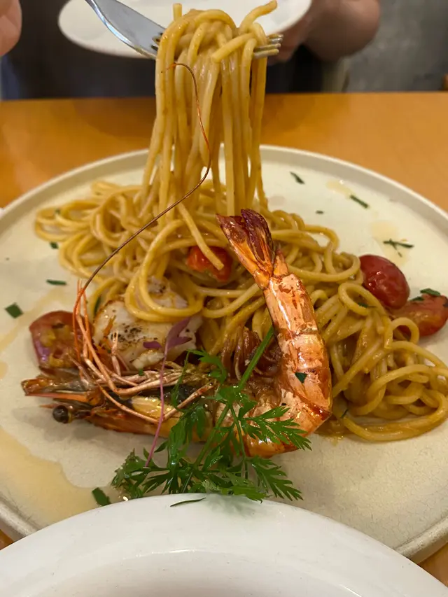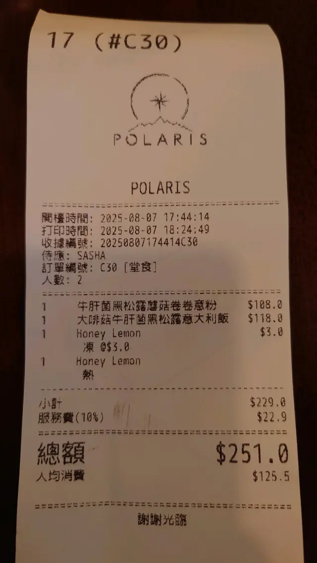 上個月同朋友約咗係大埔小店Polaris食晚餐,發現原來新界東有間咁高質嘅小店🥹前幾日趁星期五放工又再次由港島遠征到大埔,為咗美食,來回兩小時係值得!黑松露牛肝菌蘑菇湯 $48————————————黑松露同牛肝菌嘅味道都非常香濃,啖啖蘑菇顆粒感,超足料。店員送上去皮嘅凍蕃茄仔比我哋Refresh吓口腔,酸酸甜甜嘅味道,每粒都非常多汁,非常開胃!炙燒開心果奶蓋綠妍 $48————————————個奶蓋勁出色,薄薄一層炙燒增添咗香口嘅感覺,開心果味好濃郁,同時又唔會太甜,奶蓋勁厚,超柔滑超綿密,配上清新嘅綠妍🍵個配搭好正。農場草莓乳酪明治牛奶 $48————————————好多士多啤梨肉🍓甜甜一杯好易入口,好有少女心💕蘋果木煙燻日本章魚•蒜蓉蛋黃醬 $88————————————墊底嘅墨汁薯蓉超有驚喜,除咗入口超香之外,口感既順滑又超綿密。再配上刁草同埋蒜蓉蛋黃醬,層次更加豐富,再加上小蕃茄解膩,章魚有少許Smokey感,口感彈牙🐙雖然主角係章魚,但其他配料都非常出色,整個配搭都非常有誠意。油甘魚刺身•秘製奶油汁•刁草油 $88————————————油甘魚刺身味道清爽,肉質較厚實🐟配上餐廳自家製嘅秘製Cream sauce同松子仁青醬,加上紅椒粉、刁草、刁草油,既精緻又能帶出刺身嘅鮮味。虎蝦北海道帶子龍蝦汁扁意粉 $138————————————份量好大🍝虎蝦同帶子都煎得好香,龍蝦汁非常濃郁,扁意粉好掛汁。48小時慢煮美國黑毛安格斯牛小排•烤雜菜•紅酒燒汁 $298————————————慢煮可以減少烹煮時嘅水份流失,保留食物嘅原汁原味,牛小排肉質軟腍,同時保持到肉質juicy。餐廳嘅紅酒燒汁用咗大量牛尾骨同蔬菜熬製兩日兩夜,非常用心,紅酒汁配牛肉真係好適合。莓之戀人 $98————————————好似座山咁大嘅甜品⛰️雞蛋仔係即叫即整新鮮出爐!配上Berries🫐仲有雪糕🍦自家製提拉米蘇 +$48————————————惠顧Main course, Pasta等等,就可以優惠價$48享用餐廳自家製Tiramisu,每一口都口感軟滑細膩,好Creamy!…查看更多