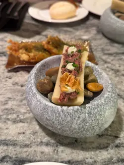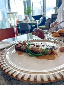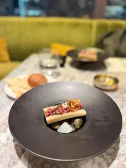 平時夜晚嚟蘭桂坊飲嘢,都未試過晏晝響度食lunch,今次嚟到加州大廈24樓,出𨋢已經感覺到光猛耀眼讓陽光映入眼簾,加埋呢度嘅音樂同埋望到周圍嘅景致都覺得自己好似離開咗香港咁,如果喺附近做嘢嘅人嚟到食lunch應該好放鬆先黎一份頭盤生蠔Oysters (2pcs) Served with Mignonette, Lemon, 冰爽嘅生蠔配合檸檬同埋木犀草醬,嗰陣海水鹹味同埋酸味嘅衝擊真係夠晒醒神,即刻開晒胃準備食主食見set Menu裏面竟然有一個Section特別講PARMIGIANO WHEEL 芝士火焰車輪意粉,梗係要叫你試吓啦,仲有唔同嘅意粉可以選擇,今次揀咗Strozzapreti 手卷意粉,用香檳奶油汁,響36個月巴馬臣熟成芝士輪烹煮,芝味濃郁另外set lunch main 揀左Porterhouse Lobster Roll 招牌龍蝦包,龍蝦包滿滿的牛油香味,配搭住配柚子蛋黃醬同三文魚籽,賣相靚仔之餘又好味,仲可以用麵包包加埋頭先車輪意粉嘅醬汁,又多一款食法呢度嘅lunch set Menu都幾多選擇,下次可以再同朋友過嚟試吓…查看更多