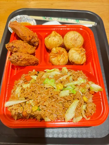 呢次已经系第二次食呢间小店店长应该系正宗尼泊尔人唔太识讲广东话要用英语落order上次食咗佢嘅蒸饺子觉得都几惊艳饺子粒粒都劲多肉汁,粒粒都胀卜卜同我哋嘅中式饺子好唔同佢入边会有啲洋葱配菜虽然叫嘅系鸡肉饺子,但系你唔会成粒有肉肉嘅感觉几特别今次嚟到想试吓佢其他食物叫咗其中一份拼盘嘅meal 可以样样试少少个炒饭炒得几干身配埋佢𠮶个辣辣地嘅酱几惹味佢𠮶酱其实系配落啲任何食物度都系match嘅佢四个饺子变咗系炸嘅外脆内Juicy 鸡翼都炸得酥脆不过其实佢个food court位置有啲细啲凳有啲唔系咁好坐同埋通风系统唔系咁好之外有机会都会再试嘅…查看更多