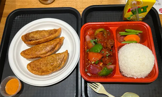呢次已經係第二次食呢間小店店長應該係正宗尼泊爾人唔太識講廣東話要用英語落order上次食咗佢嘅蒸餃子覺得都幾驚艷餃子粒粒都勁多肉汁,粒粒都脹卜卜同我哋嘅中式餃子好唔同佢入邊會有啲洋蔥配菜雖然叫嘅係雞肉餃子,但係你唔會成粒有肉肉嘅感覺幾特別今次嚟到想試吓佢其他食物叫咗其中一份拼盤嘅meal 可以樣樣試少少個炒飯炒得幾乾身配埋佢嗰個辣辣地嘅醬幾惹味佢嗰醬其實係配落啲任何食物度都係match嘅佢四個餃子變咗係炸嘅外脆內Juicy 雞翼都炸得酥脆不過其實佢個food court位置有啲細啲凳有啲唔係咁好坐同埋通風系統唔係咁好之外有機會都會再試嘅…查看更多