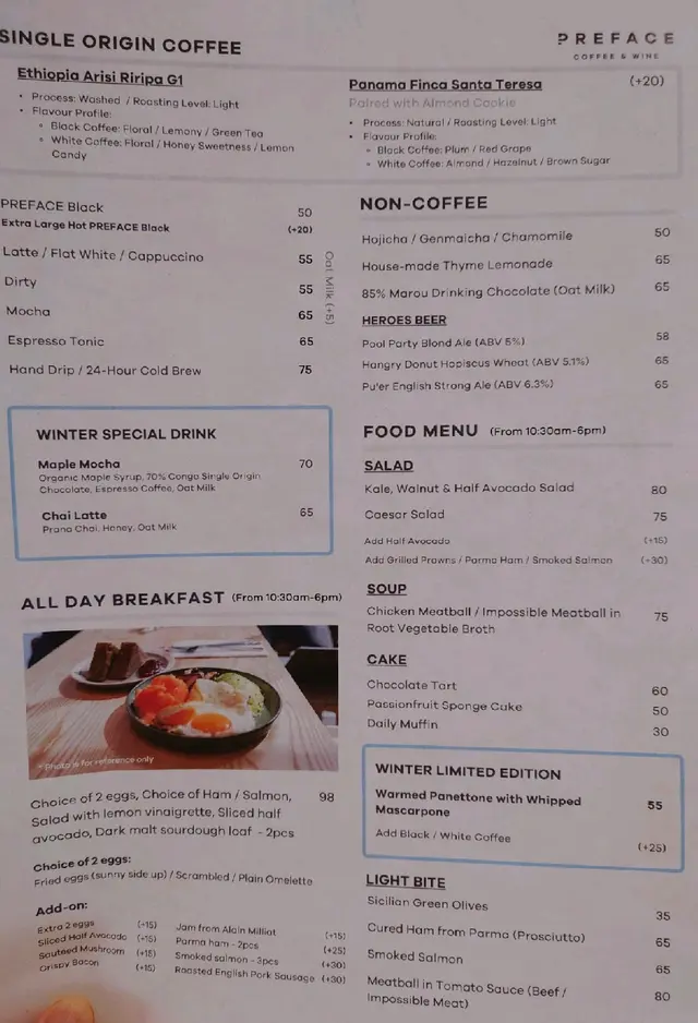 PREFACE COFFEE & WINE (The Loop) (中环) 网址: https://s.openrice.com/QrLS0MxGA00 地址: 香港中環威靈頓街33號The Loop地舖及地下上層 电话: +852 24210010