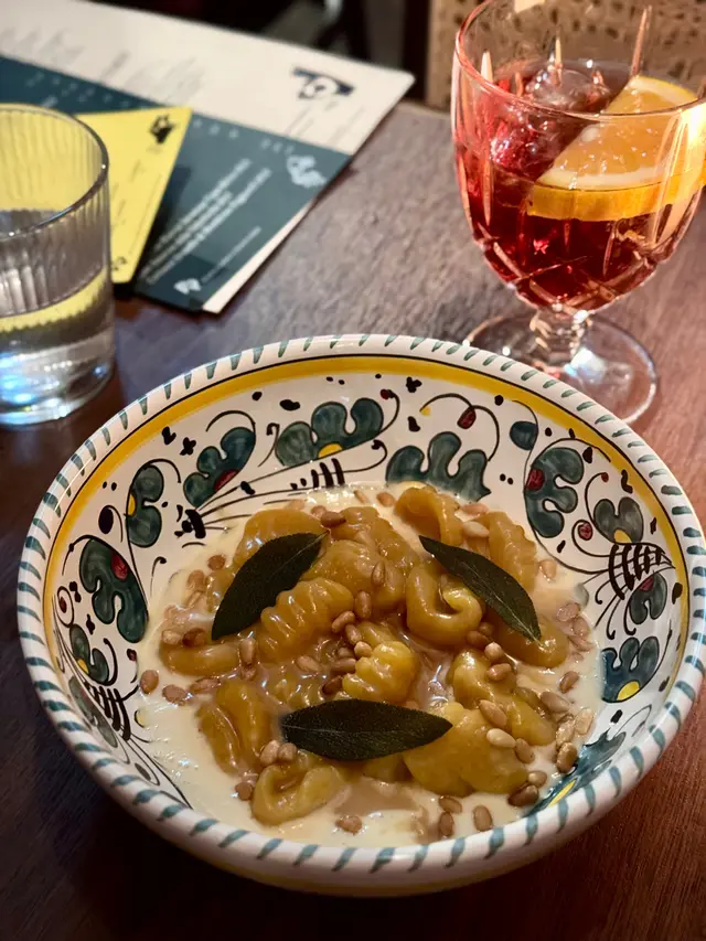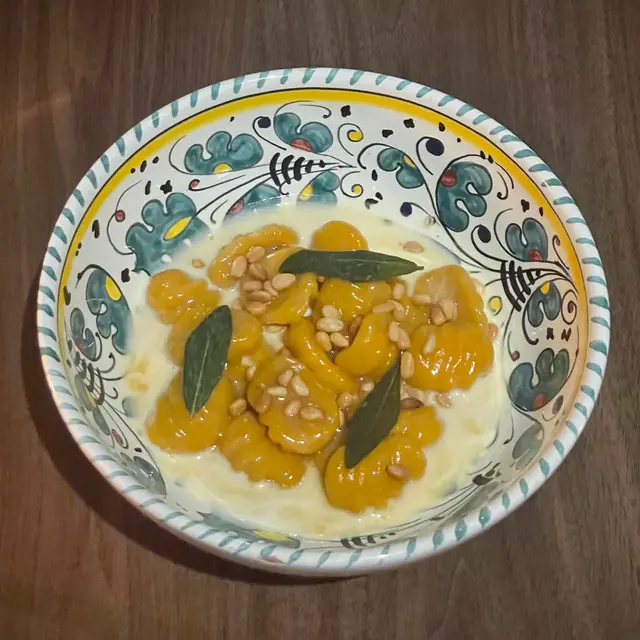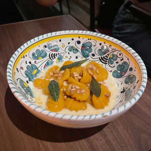 再加埋自家製蒜香蛋黃醬,邪惡得嚟好滿足✨🟠 Pumpkin Gnocchi入口超煙韌,絕對係港島必試 Gnocchi!南瓜味比較淡,反而鼠尾草嘅香氣好突出!配埋好creamy 嘅芝士醬同埋烘松子包住~ 每啖都好rich🙌🏻🍫Tiramisu 用大匙刮出嚟成個鐵盆咁serve,啖啖mascarpone好滑,
