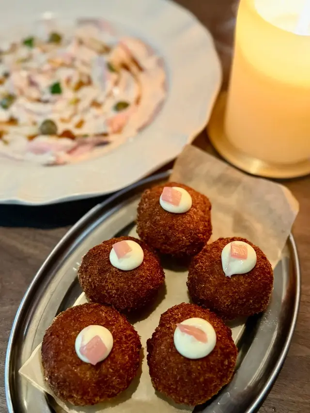 由佛羅倫斯Gabriel主理,主力做北部意大利嘅傳統米蘭菜😋每一道菜都好好食!而且大部分菜式都係$1xx-$2xx 之間 但份量就略嫌細份咗少少 ><連酒都係$100樓下!不過環境都幾暗🌫️ 係幾浪漫🌹(?) 🤣◞ ⭐️ 特別推薦 ⭐️🟡 Mondeghilli Meatballs呢味最驚喜!一咬爆汁~肉味濃郁又唔油膩,外層炸到香脆🥹