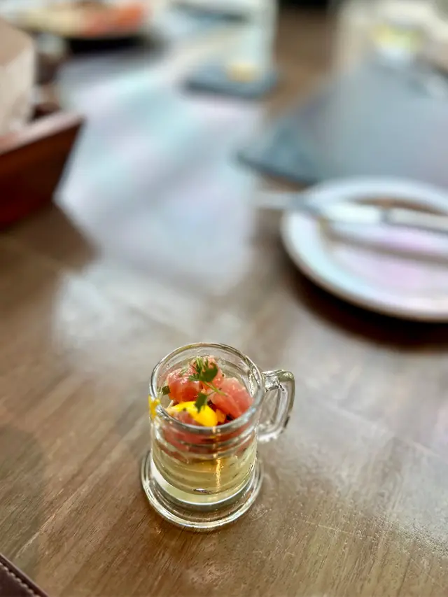 同班friend去咗黃竹坑呢間Prohibition扒房‧酒吧,真係有種穿越返去1920年代美國禁酒時期嘅感覺!餐廳藏身喺海洋公園萬豪酒店入面,裝修以復古工業風為主,昏黃燈襯住皮革卡座、磚牆同懷舊吊燈,氣氛一流,勁啱同朋友慢慢食嘢吹水。試咗,外層煎到金黃香脆,切開見到一絲絲珍寶蟹肉,蘸埋他他汁,鮮味十足又唔會膩。另外佢哋嘅係免費送嘅,麵包外脆內軟,帶微微麥香,開胃得嚟又夠飽肚。一定要試佢哋嘅,據講係餐廳招牌!我哋叫咗五成熟,切開肉色粉嫩又多汁,入口有淡淡酒香同茶葉燻香,牛肉味濃得嚟層次感好突出。伴碟嘅烤蔬菜同薯蓉亦做得細心,平衡返肉膩感。同樣有驚喜——原來餐廳同知名品牌CIAK合作,提供手工意式Pizza。我哋揀咗雙拼款式,鹹香濃郁,另一邊嘅就清新啲,餅底發酵得夠透,焗到邊位脆卜卜,食落煙韌有麵粉香。推介,上枱時店員會即場點火淋酒,藍色火焰打卡一流!外面燒到微焦脆,裡面係雲呢拿雪糕、朱古力同海綿蛋糕,凍熱交融嘅口感好過癮。整體嚟講,呢度食物質素高,環境同服務都加分,雖然價錢中上,但偶爾想享受下慢活晚餐絕對值得。搭港鐵海洋公園站行兩分鐘就到,方便就腳,已經約定下次再嚟試佢哋嘅周末早午餐同特色雞尾酒!…查看更多