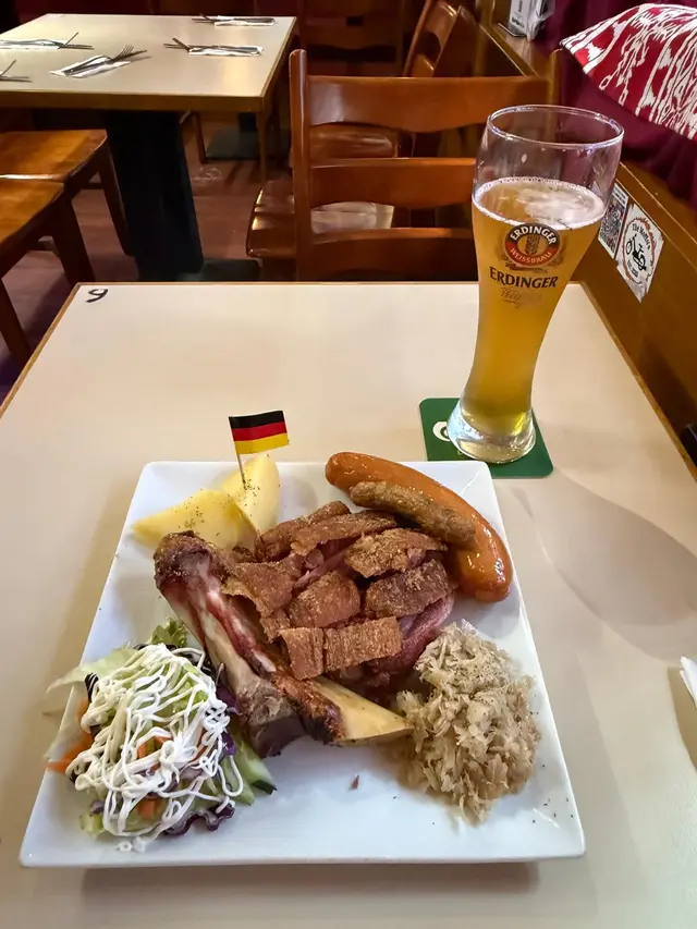 今晚喺Prosit試咗兩款招牌菜,濃濃德國啤酒館風情,份量十足夠晒滿足!🌭 雜腸拼盤 ▪️ 內含五款德式香腸:紐倫堡腸、圖林根腸、芝士腸、辣肉腸同血腸▪️ 紐倫堡腸香料味突出,肉質緊實多汁▪️ 芝士腸切開流出半溶車打芝士,邪惡度爆燈▪️ 血腸口感綿密獨特,帶淡淡草本香氣▪️ 配搭酸菜同薯泥,有效平衡油膩感🐟 炸魚薯條 ▪️ 選用比目魚柳,炸漿薄脆金黃不油膩▪️ 魚肉保持濕潤嫩滑,完全唔乾柴▪️ 粗薯條帶皮炸,灑上黑松露鹽提升格調▪️ 他他醬加入刁草同檸檬汁,清新開胃✨ 整體體驗:✅ 雜腸拼盤適合想一次過試多款口味✅ 炸魚水準拍得住英式專門店✅ 環境充滿木系裝修同啤酒桶元素✅ 建議搭配德國生啤(Hofbräu原桶直送)…查看更多