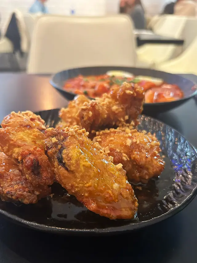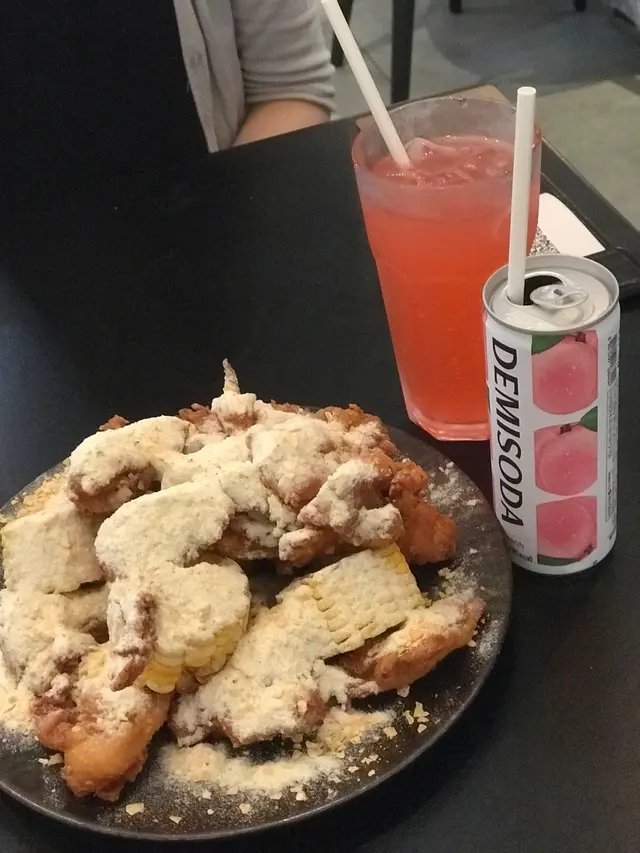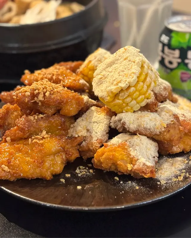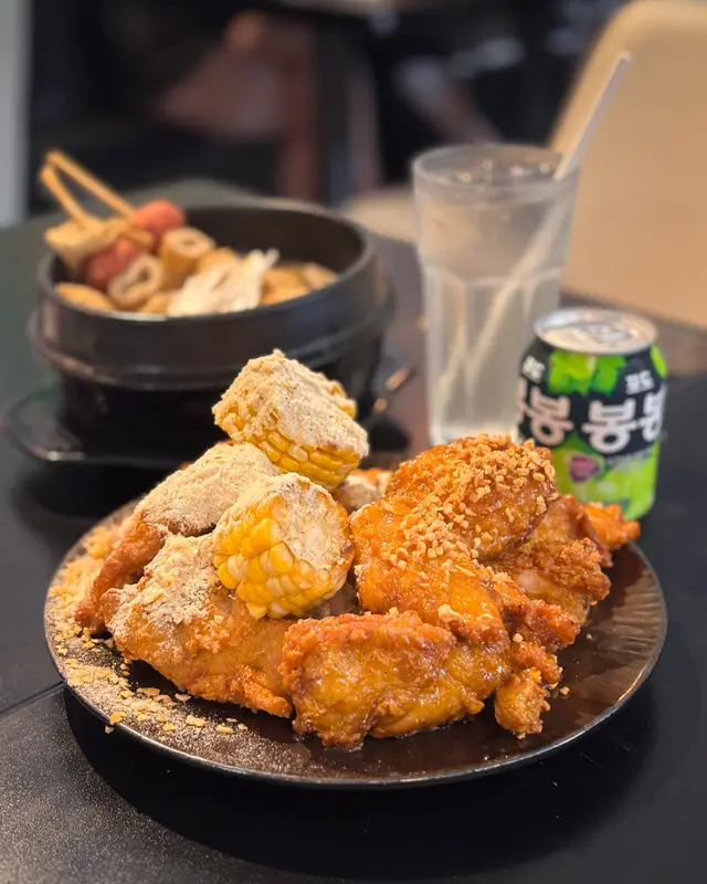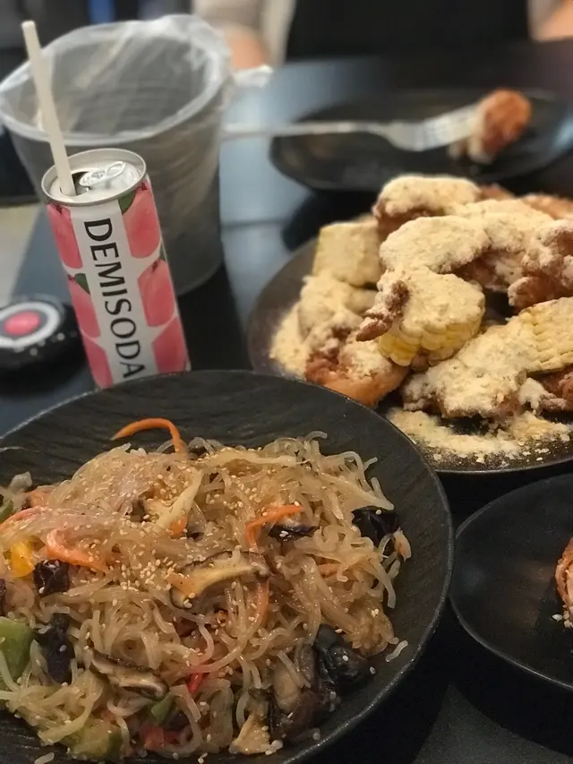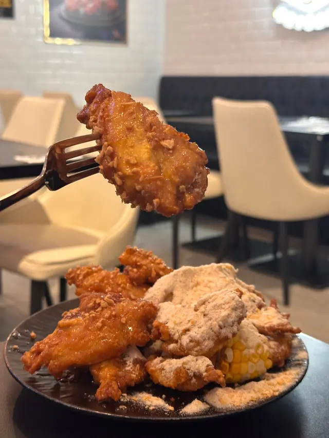 This Korean chicken place was to die for! Authentic and full of vibes- you know how good it is when you saw two Korean uncles seated next to us with chicken, plus rounds & rounds of boozes! Corn-so-amazing boneless chicken was our pick and it was absolutely scrumptious. The chicken was baked then deep fried, not greasy at all, skin extremely light and crispy, flesh juicy and fresh, topped with a generous amount of naturally flavoured corn powder. The corns chunks were impressively delicious, I kept munching on them. Japchae glass noodles tasted authentic, stirred with mushrooms, onions, green beans and capsicum. Seafood pancakes came in huge portion, it was thick and satiating, sprinkled with squid and assorted seafood bits, served with a vinegary dipping sauce. Everything tasted amazing, and there were popular Korean music hits to give you the grooves. …查看更多