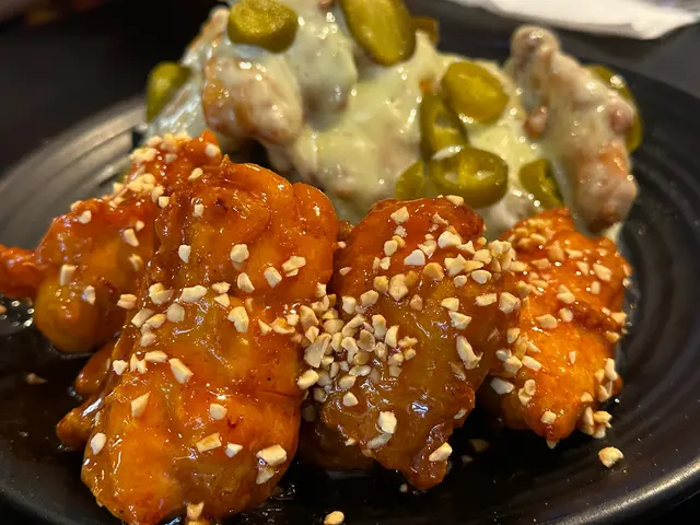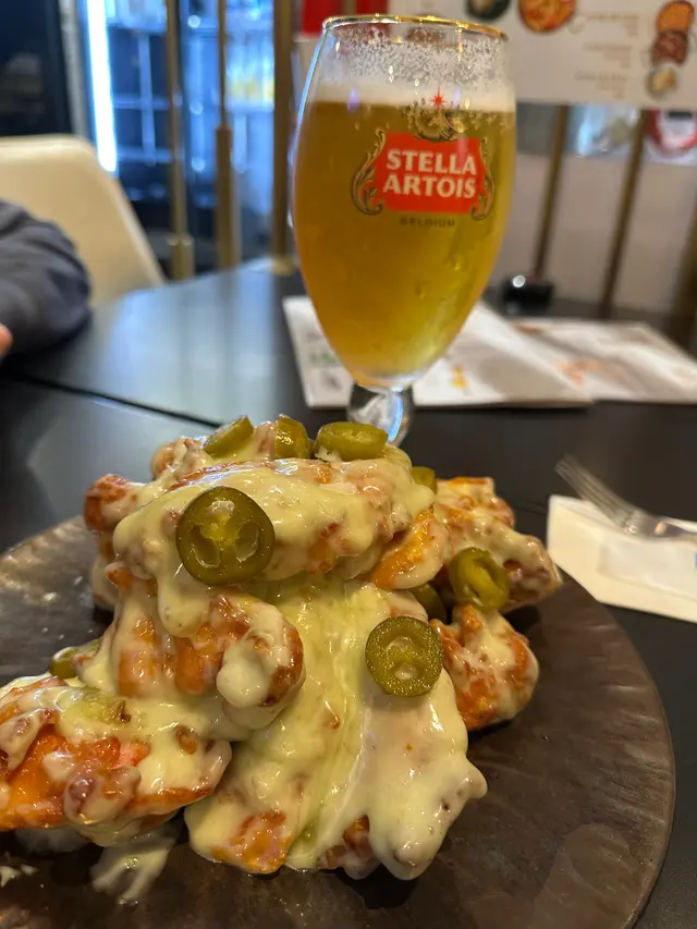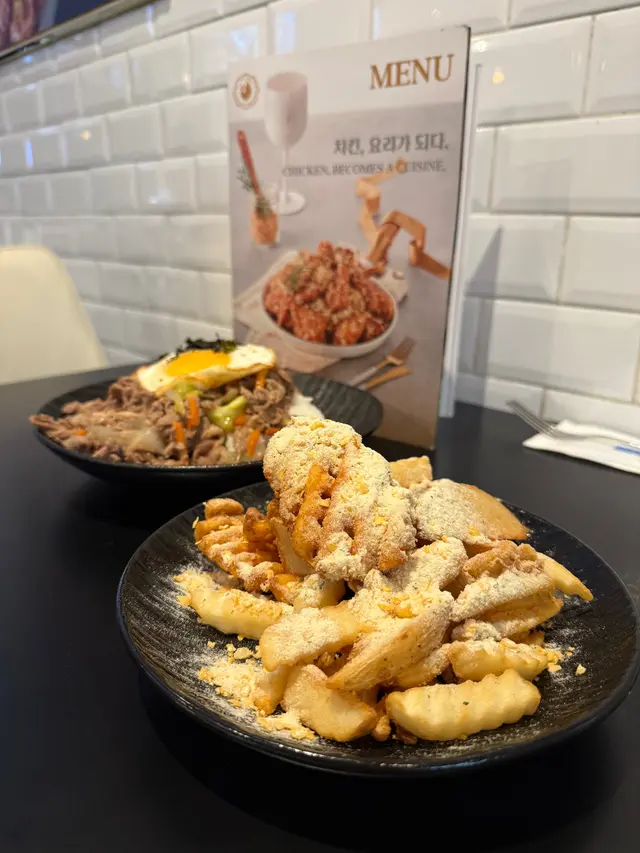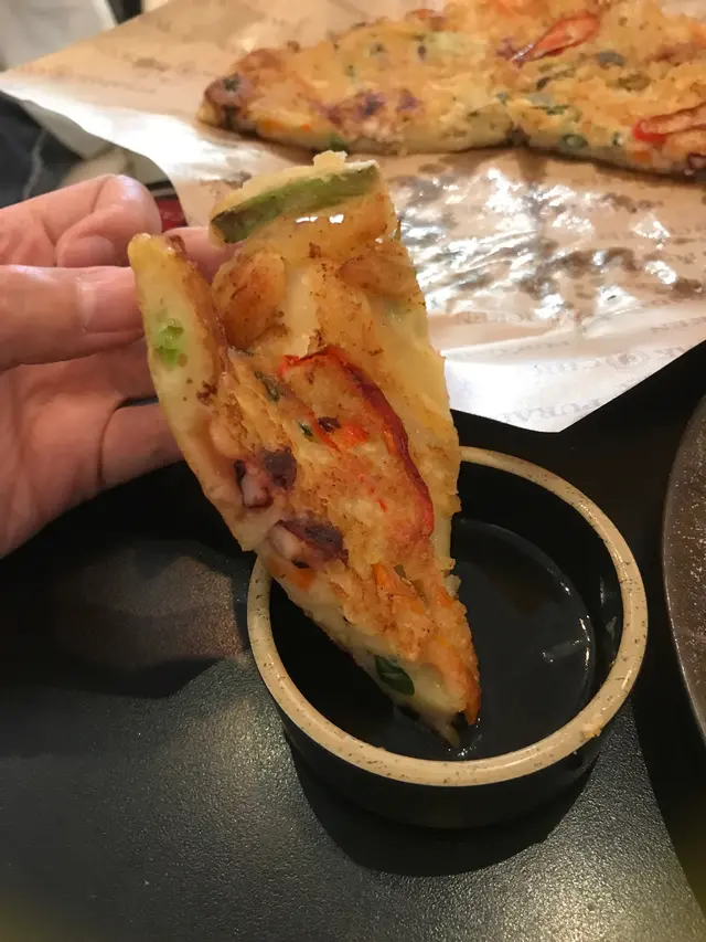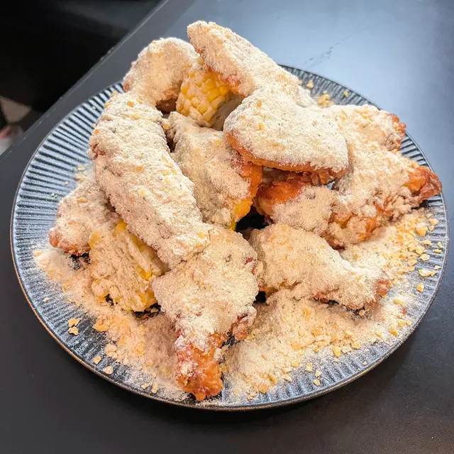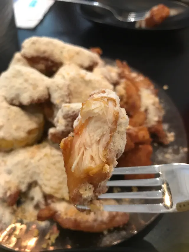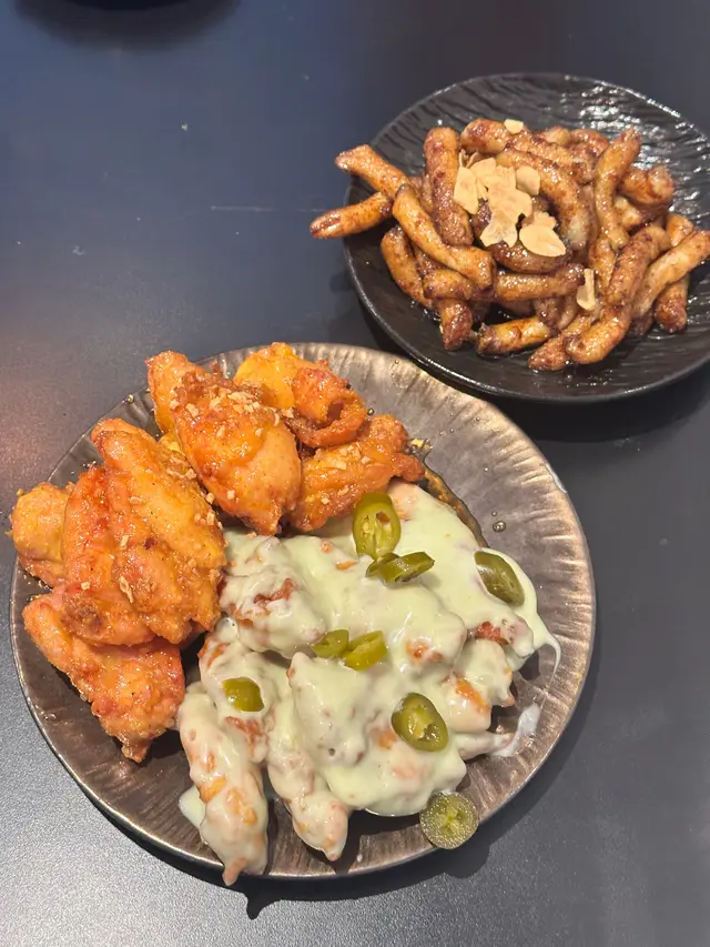 This Korean chicken place was to die for! Authentic and full of vibes- you know how good it is when you saw two Korean uncles seated next to us with chicken, plus rounds & rounds of boozes! Corn-so-amazing boneless chicken was our pick and it was absolutely scrumptious. The chicken was baked then deep fried, not greasy at all, skin extremely light and crispy, flesh juicy and fresh, topped with a generous amount of naturally flavoured corn powder. The corns chunks were impressively delicious, I kept munching on them. Japchae glass noodles tasted authentic, stirred with mushrooms, onions, green beans and capsicum. Seafood pancakes came in huge portion, it was thick and satiating, sprinkled with squid and assorted seafood bits, served with a vinegary dipping sauce. Everything tasted amazing, and there were popular Korean music hits to give you the grooves. …查看更多