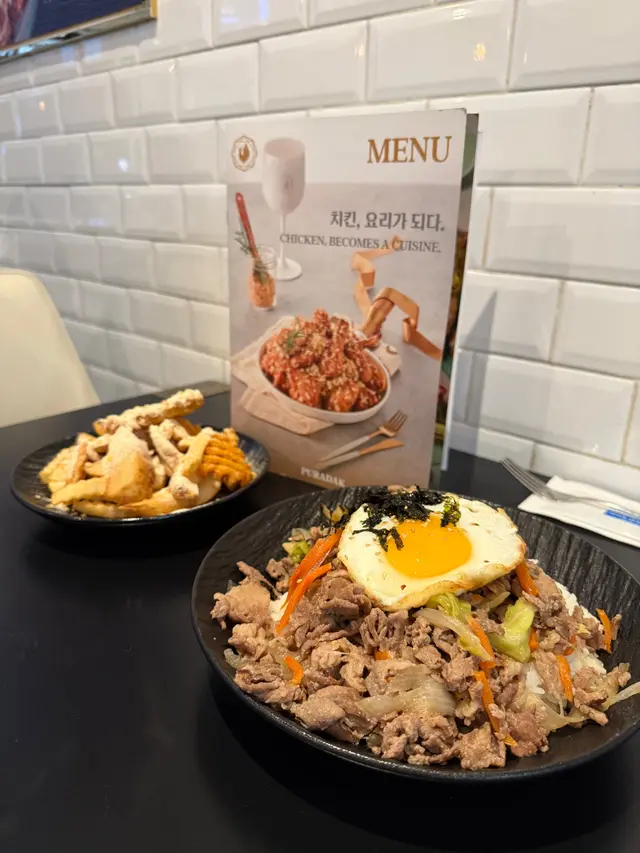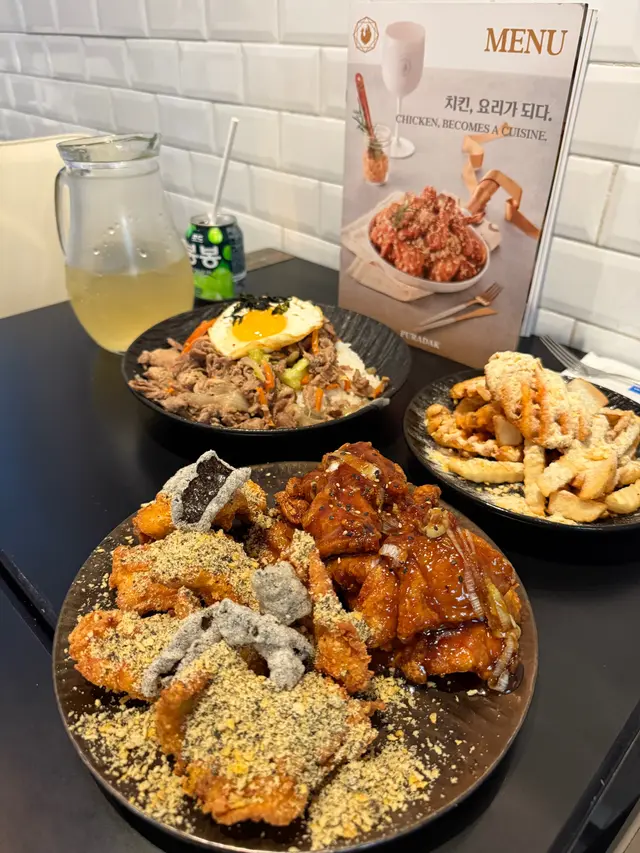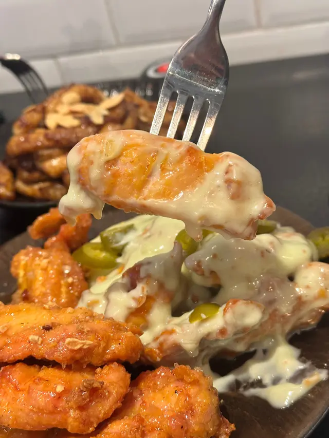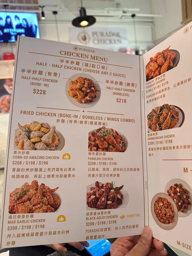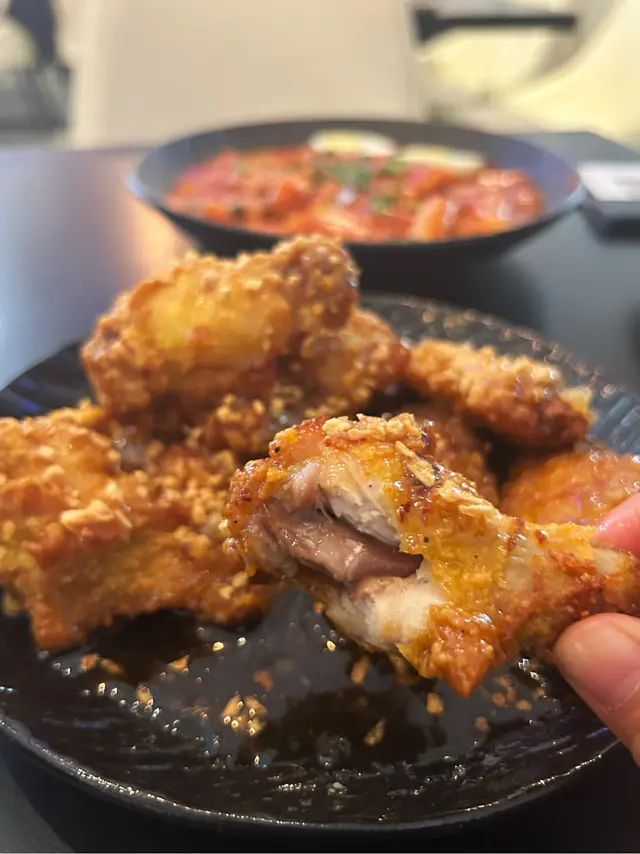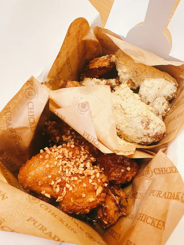 過江龍Puradak Chicken已經食過好多次🙂↕️今日去尖沙咀經過口痕想食炸雞,所以就入去食,平日收咗工夜晚入到去都幾多人,幾乎滿座半半炸雞(無骨)Corn So Amazing + 瘋狂蒜香炸雞想食兩隻味可以揀半半炸雞,仲可以揀無骨好方便,佢哋嘅炸雞係先焗後炸,炸皮會比較薄冇咁流瘋狂蒜香係重口味之選,面頭有好多蒜粒,食落辣辣地幾惹味🙂↕️Corn So Amazing 係每次必嗌😆面頭灑上左好多粟米湯粉,食落完全係粟米湯嘅味道,甜甜地好濃郁🤤仲配有幾件粟米🌽魚糕湯🍢呢幾日凍凍地一定要嗌返個湯,入面有唔同種類嘅魚糕好足料,魚糕索晒湯幾入味,飲到個人暖笠笠☺️秘製黑醬炒年糕🧆年糕外面香脆食落煙靭,配上黑醬油同生蒜片超級惹味🙂↕️…查看更多