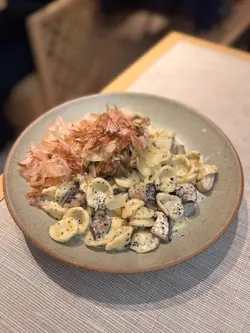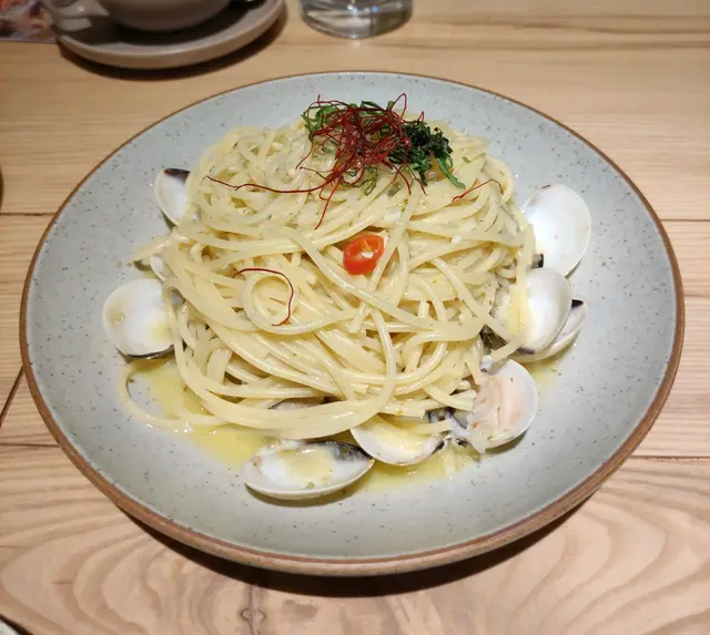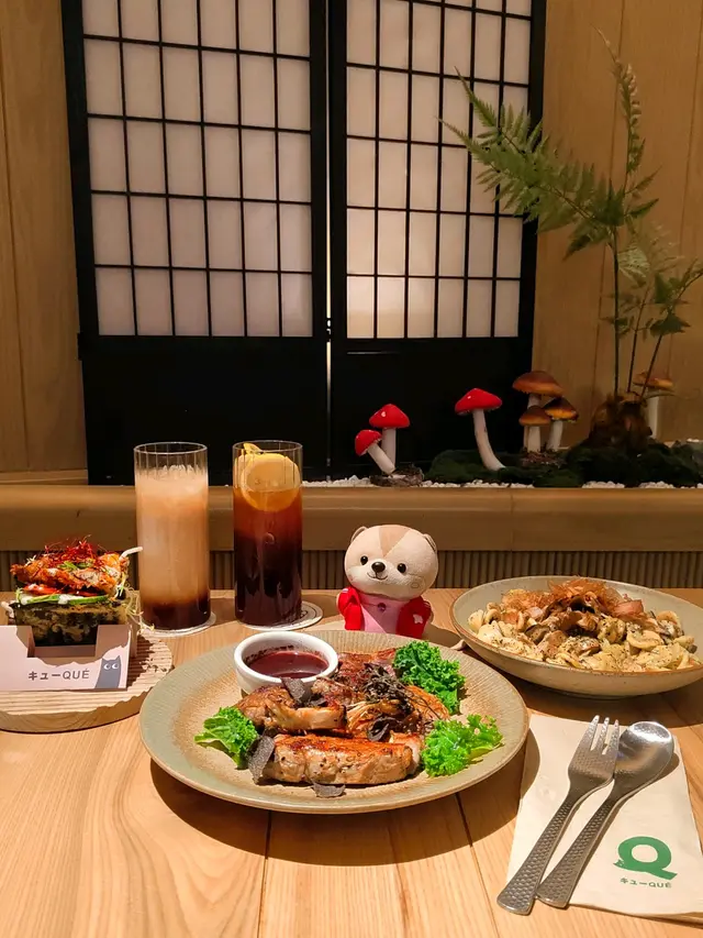 行完寶蓮寺,落番東涌搵食,但响東薈城望下佢果堆餐廳list都唔太啱食咁,响遠處見到好大隻「Q」字,望落似餐廳同唔少人,就行去望下。「QUE」對我嚟講有啲陌生,我响OpenRice見佢都唔少分店,見好多Foodies評分都唔錯就入去試下。店內嘅環境都好乾淨舒適,好優閑嘅感覺。我哋5點入座,除了可以點下午茶餐外,仲可以點午餐。我哋都係揀下午茶餐,我哋分別點咗「黑松露野菌意粉配木魚絲及帕瑪芝士」同「蒲燒鰻魚忌廉炒蛋意大利飯丼」,再加多份跟餐嘅追加小食「日式香鬆炸薯條配黑松露蛋黃醬」。但我發覺點錯嘢,三款嘅菜式都係好「漏」,芝士、忌廉、蛋黃醬!到我打呢篇食評時都成10點幾,但都仲未消化到,認真誇張。雖然好似唔消化咁,但佢三款嘅菜式都好令人回味。「日式香鬆炸薯條配黑松露蛋黃醬」呢個我除咗嫌佢個薯條有啲幼外,我覺得佢個薯條勁正,佢做到好似shake shake薯條咁好香濃同惹味,點上黑松露蛋黃醬,完全係味蕾爆發,令成個薯條嘅味到大大提升,每一條薯條,都要沾滿佢個蛋黃醬先夠滿足,但正正我咁點法,到最後係唔夠醬點!「黑松露野菌意粉配木魚絲及帕瑪芝士」上到菜我誤會咗啲四方粒粒係魚,好少可會將啲菇切到咁大粒,食落好有口感,松露同芝士嘅味道都好突出,意粉嘅軟硬度亦剛好,但我估唔到佢係有啲heavy,我以為好似食齋咁應該冇乜嘢,最後都係食唔落。「蒲燒鰻魚忌廉炒蛋意大利飯丼」好耐冇食過鰻魚,佢有三大塊,燒得好靚同佢個燒汁好均勻,魚遺冇乜骨,加上佢個忌廉炒蛋,將佢同個飯撈埋一亦食係非常完美。佢個飯有加忌廉一齊煮,成件事係邪惡x2,幸好佢將飯煮得creamy之餘,亦煮得效淋身,唔係應該會食到胃痛。另外要讚嘅係佢個小配菜醃蘿蔔,佢不單只爽脆,而且帶有柚子嘅香甜味,連我唔食呢啲嘢嘅人都覺得驚喜。「凍檸檬茶」好多人都會覺得凍檸茶唔係都要講一餐下話!但係我就係覺得佢有啲唔普通,我哋都飲得出佢有種花香嘅味道,好似花茶加上檸檬,我覺得幾特別,好relax嘅感覺。最後埋單301蚊,下午茶嚟講唔算話好平,但佢地都比到應有嘅食物質素,環境衛生同服務等都做得唔錯,我覺得值得再試下佢更多唔同嘅菜式。…查看更多