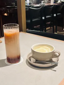QUE是人气西日餐厅,装潢以浅木系为主,加上可爱猫猫元素,充满少女心。空间感宽阔,坐在舒适卡位,品尝和洋Fusion美食;丰富的寿司塔可、香脆的拿破仑,及吸睛的饮品,是周末好去处。松叶蟹肉海胆酱寿司塔脆卜卜的紫菜,包裹著鲜甜的松叶蟹肉,鲜香美味,加上海胆酱的点缀,令鲜味加倍升华。薄切三文鱼配蜜柑香梨三文鱼肉质鲜嫩,油润可口,搭配香梨及蜜柑,鲜味中柑果的清香,清新怡人。香煎凤梨鸭胸配热情果香蕉及芥末薯蓉香煎的鸭胸外焦内嫩,肉汁juicy,搭配热情果香蕉酱的酸甜,滋味吸引。芥末薯蓉绵蜜,微微的辛香,丰富的口感。红肉火龙果桃桃西柚气泡饮粉致的气泡饮,以鲜艳的火龙果,和桃子的甜香为基底,弥漫蜜甜果香,加上西柚杂果,入口清新又fruity,很适合女孩子。菠萝青瓜迷迭香气泡饮充满热带气息,菠萝与青瓜清爽结合,气泡感十足,清凉解渴,适合炎热的夏天。草莓蜜柑拿破仑拿破仑酥皮外层,夹著奶滑吉士酱,沁出浓厚牛油香,搭配草莓和蜜柑的清新,甜而不腻,是诱人的饭后甜点。…查看更多