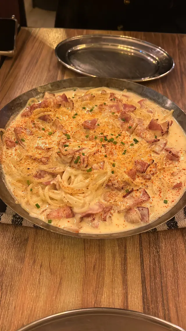 落地大玻璃嘅餐廳🍴碟碟都勁足兩😍✨煙肉忌廉蛋汁意粉(Carbonara pie )$168痴線‼️ 暫時食過No.1嘅卡邦尼♥️好誇張🤣未食過成個煎pan上嘅Carbonara,氣勢十足,打卡一流,而且份量勁多,creamy,好重奶油同芝士味,未食過咁入味嘅卡邦尼!😍✨海苔蜜糖雞翼 $98份量極多,好香口🥰✨蒜香松露薯條 $98薯條好脆👅一啲都唔淋😍.📍:R&B (尖沙咀)尖沙咀彌敦道172-174號太平洋大廈3樓*佐敦站D出口行去會快啲。......#佐敦#jordan#尖沙咀#尖沙咀美食#尖沙咀好去處#西餐#carbonara#carbonarapie#chickenwings#fries#fries🍟#frieslover#卡邦尼#卡邦尼意粉#雞翼#薯條#foodies…查看更多