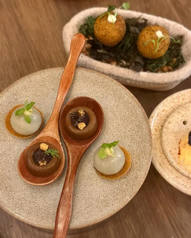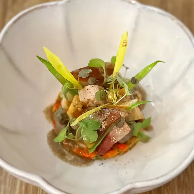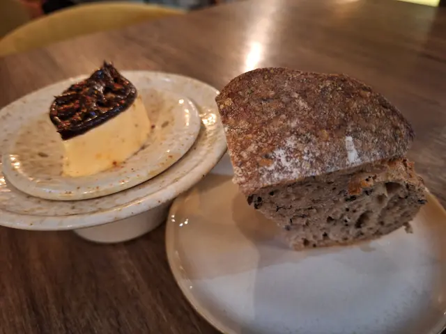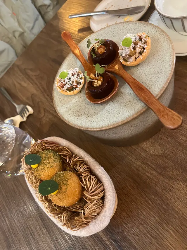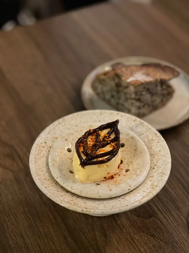 This restaurant is really popular and after we left around 830pm, a second round of customers were coming in.We ordered the full menu to try all their items.This is the first time I tried cereal sourdough which had an earthy taste and the smoked butter was an excellent touch. There were two kinds of spread for the next dish. The black pudding was my friends favourite though I liked the shrimp tartar a bit more as I like lighter flavours.The tuna confit with the deep fried base was rich and the contrast of temperatures was fun.The dish has two different kinds of sweetness from the gambero and beetroot which complemented each other.The escargot tart was larger than I thought and the flavors of the figs reminded me of the fall.Instead of just orange, they chose clementine instead which gave a more delicate citrus flavor leaning towards the sweeter side while enjoying the succulent sea bass.Next is their signature, the pigeon. The sauce flavor was just right without being too rich and the stuffings inside the mushroom was amazing.I love again how they took the cheese dish and turned it into their own by serving it was a fried dumpling. They also added kumquat on top which further made the dish taste less heavy.I was surprised how they incorporated celeriac into the dessert. The rich and sweet hazelnut was balanced out by this refreshing addition as well as lime, leaving you wanting seconds.They change their menu quite frequently and looking forward to their next menu.…查看更多