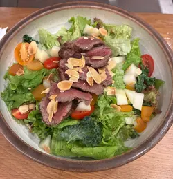 ✨Double Double Burger w/ Bacon Jam ✨购自: Reaction Coffee Roasters (尖沙咀么地道32-48号丽东大厦地下A号舖)价钱:$158推荐度:8/10-呢款burger上面有咸甜烟肉果酱 几惹味!里面有免治牛肉 配埋溶化咗嘅车打芝士 食落都几Juicy✅中间仲有生菜同埋蕃茄 中和返油腻感 👅芝麻汉堡口感几软熟 唔会好干 旁边跟炸番薯条🍟炸得好香脆 甜甜地 不过再热啲会更好🙏-✨慢煮牛小排田园沙律🥗✨价钱:$142推荐度:8/10-呢个沙律有惊喜 我同朋友都好欣赏佢嘅牛小排肉质鲜嫩软腍❤️🔥 唔靭口 搭配焦糖核桃、啤梨、杏甫粒同埋车厘茄🍅 口感层次丰富 清爽而不腻✅ 钟意甜甜地嘅沙律🥗-✨ Brulee Basque Cheesecake ✨价钱:$68推荐度:7.5/10-巴斯克蛋糕面头有一层焦糖脆脆 食落几香脆 中间嘅软心芝士够软滑细腻 整体甜甜地 但系旁边有可可粉中和返蛋糕嘅甜味💛 钟意食芝士蛋糕嘅朋友可以试吓🫵🏻