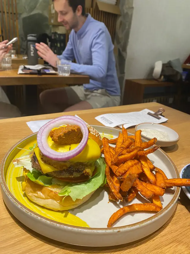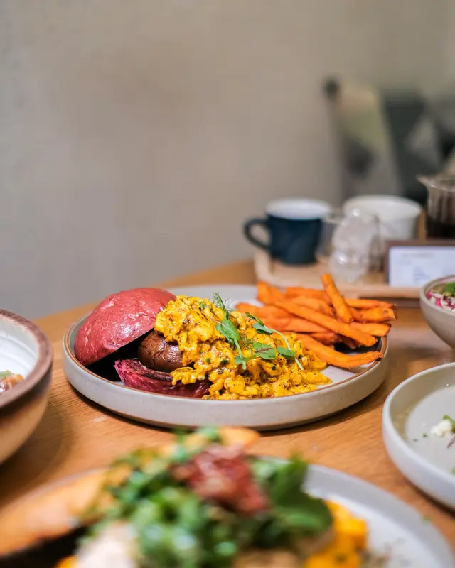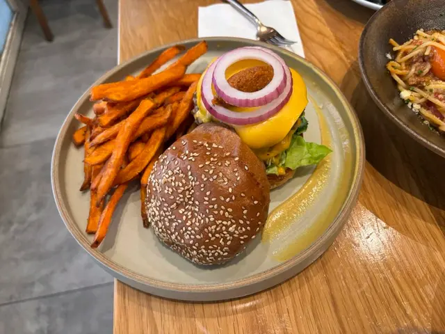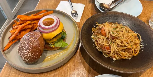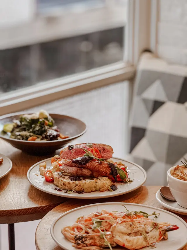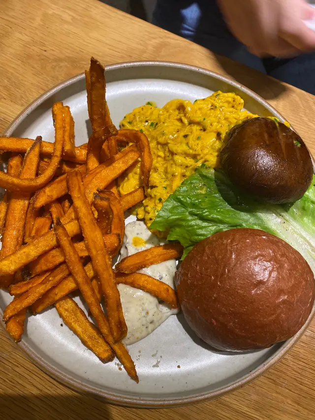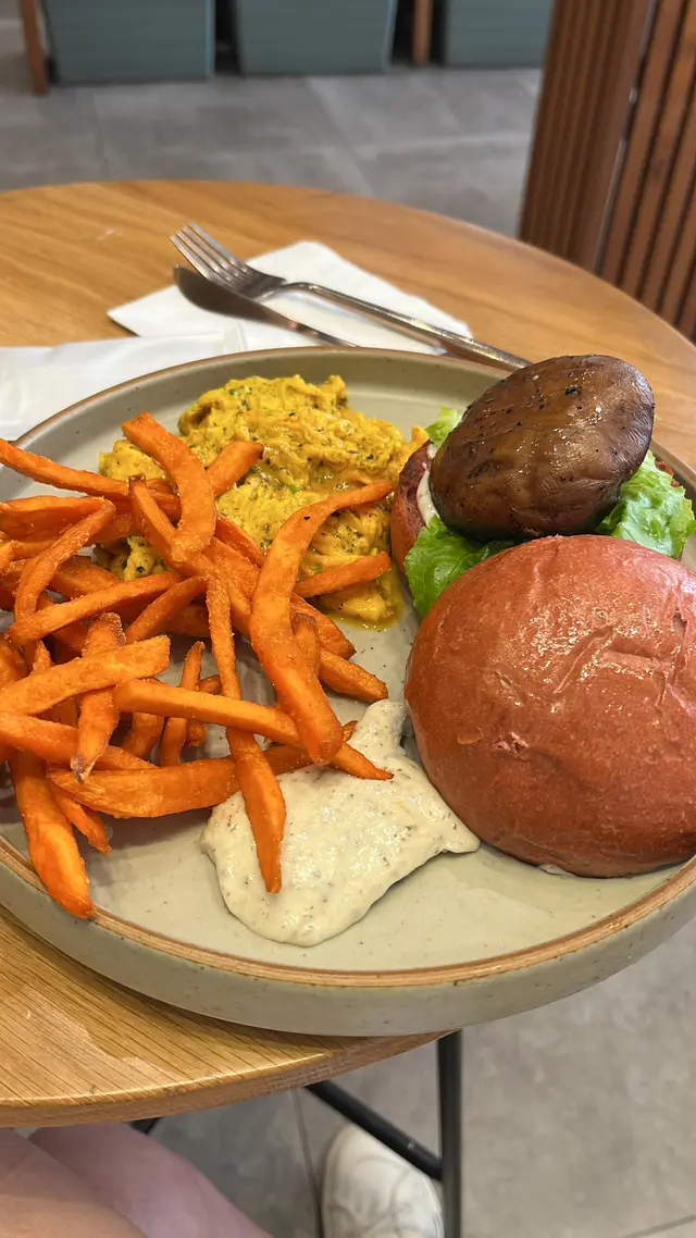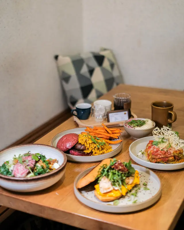 今已經第二次體驗,再黎咗「Reaction Coffee Roasters」,環境幾舒服——磚牆加燈飾夠靜謐,座位闊落,冇人等位,所以唔限時,坐得好chill。店員服務有禮,上餐節奏剛好。我點了黑松露炒蛋菇漢堡,菇扒juicy、炒蛋creamy,配番薯條幾惹味;朋友就點了牛柳沙律嘅牛柳夠嫩,搭菜同杏脯幾清爽。巴斯克蛋糕綿密唔太甜,Dirty同柚子梳打都順口。坐咗成個鐘,全程都好自在,$410蚊嘅體驗幾抵,會再再enocore…查看更多