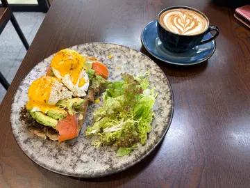 咖啡好饮,好饮在于热诚的制作,何以见得,虽然外表无咩特别,但当第一口品尝出来的味道是回甘和带小小苦,之后才慢慢散发咖啡味道,这是给我惊喜, 虽是小店但厨师说是自己炒豆,可见那份热诚。但可惜食物就令我失望了, 班尼迪多士的蛋overcook, 或许要就当地市民, 选择牛油果🥑失误(很多黑点),虽然厨师也当场换了给我,但对我来说都是唔靓牛油果,而且同之前post 的图不一样。…查看更多