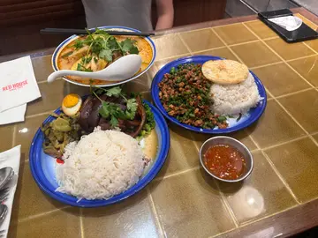 冬荫功海南鸡金边粉汤底出色,酸辣层次分明,椰香平衡不呛喉,金边粉吸饱汤汁尤为开胃。卤水猪手饭则稍显参差:猪手炖得软糯入味,骨胶质感丰富,可惜外层肉质略干嚡,且卤汁偏少,饭底未能浸润香气。香叶肉碎煎蛋饭调味正宗,九层塔与辣椒爆炒的香气扑鼻,肉碎油润带焦香,可惜豆角比例过高,抢去肉碎主角风采,稍乱平衡。 整体风味贴近泰国地道风格,调味手艺稳健,惟细节处理可更细腻——若能调整肉碎饭配料比例,并为猪手补足卤汁,体验会更圆满。以街头美食标准而言,仍是及格有余的泰味解馋选择。