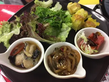 母亲节和妈妈到荃湾庆祝。斋铺去得多,素食自助餐真系五只手指数得晒。今次来这间店真的食得又饱又满足。铺头在酒店门口对面,一上电梯就看到,方便易见。 店舖不算宽敞,有大约7张桌子,如果坐满的话,应该很挤迫。幸好我们提前庆祝,坐得十分舒服。那里起码有20种美食,一望过去已在流口水。沙津姜茶串烧,各式各样的素肉。青瓜酿鸡球,又清新又有咬口,配塔很创新。平时斋铺30-40元先有5旧的烧卖,那里任拎。冬阴功汤。 唔辣,好够味,好浓郁。一饮下去,一股热气直入肚中,甜美的味道在口里回荡。内有素肉丸,一绝。本身是薯仔狂,所以一看到这窝番茄薯仔,就忍不住去了5转(虽然这是自助餐大忌)即叫即做的肉酱意份。最后当然是甜品时间,那里有4,5种啫喱,味道都算OK又一次完美的自助餐。…Read More