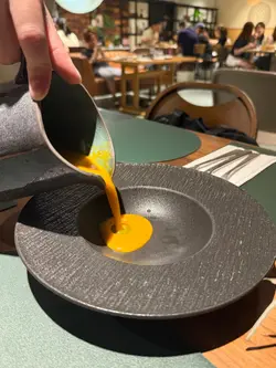 Relish 餐厅中间个超大「月亮灯」🌕 真系劲吸睛!四周用左木系家私同暖色墙身简约又有格调柔和光线下成个空间即刻多咗份梦幻感~枱椅间距够宽唔会逼逼狭狭仲有啡色梳化座可以好cozy慢慢食饭同倾偈我地试左晚市套餐有前菜、主食、饮品每项选择都好丰富各适其适是日餐汤系甘笋忌廉汤上菜都几有仪式感会喺我地面前慢慢倒甘笋汤入口香滑浓郁有少少奶香暖笠笠嘅开始几舒服😌泰式青木瓜柚子神石柳大虾沙律酸辣汁味道好醒胃!青木瓜爽脆柚子清新配上大虾啖啖肉超弹牙🫶🏻整体酸中带甜,好开胃~芝士澳洲和牛汉堡伴焦糖洋葱呢个真系主角级🤩七成熟嘅澳洲和牛汉堡厚得黎入口仲有肉汁🤤咬落啖啖肉香!焦糖洋葱带出少少甜味配合浓香芝士真系一流~炸甜薯条又香又脆配埋松露酱香气满满~完全唔油腻!香茅柠香鸡胸配青咖喱意粉鸡胸煎得好嫩滑唔干柴~青咖喱味香浓微辣带少少椰香味令到食鸡胸感觉都唔寡估唔到观塘区楼上有间咁有格调嘅地方价钱以套餐黎讲中上但质素对得住价位下次约人喺观塘café hopping 又多一个新地方…查看更多