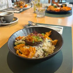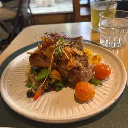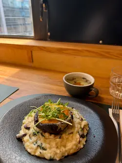 同f收工又聚,帶我去工廈食好西😂哈哈!Dinner menu有得揀前菜或餐湯,主菜,另外可以半價配埋飲品。Starter我揀咗蟹肉餅伴黑蒜蛋黃醬,配法式雷穆拉德醬芹菜頭青蘋沙律,蟹肉餅外表焗到好甘香,食落有一絲絲蟹肉,味道非常突出,上面仲有矜貴嘅魚子醬,再加上一啖清新嘅芹菜頭蘋果沙律,味道好夾。另一個Starter我哋加$38升級左味增廣島蠔湯,配上一塊香脆的廣島蠔多士,店員會係客人面前即席倒湯,儀式感滿滿,蠔湯味道好鮮,同味增好夾。Main Course我揀咗芝士澳洲和牛漢堡伴焦糖洋蔥,田園沙律,同炸甜蕃薯條配松露醬,店員會問你想要幾多成熟,我哋揀咗七成,漢堡扒好Juice,入面仲有生菜、蕃茄同芝士,個包有啲似豬仔包,外層好香脆,炸甜番薯加埋d松露醬,食落好滋味。朋友揀咗椰香叻沙汁煮手工幼管意粉,配香茅牛油焗波士頓龍蝦,喇沙味道真係好香濃,手工幼管意粉嘅口感好煙靭,每一啖都有椰香喇沙掛汁,層次好豐富,龍蝦肉好彈牙仲有膏好正。飲品方面,店員推薦我哋飲期間限定嘅抹茶奶蓋椰子水,同椰子奶蓋鳳梨梳打,兩杯賣相都好精緻,好適合打卡,抹茶奶蓋好濃郁,配上底下清甜嘅椰子水,又滑又好飲,而椰子奶加上鳳梨嘅清甜好夾,上面有一片菠蘿乾好精緻,酸甜嘅果味好解膩。…查看更多