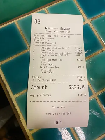 Restoran SAYA主打依善地区的传统泰国菜,虽然餐牌上只有不到三十款食物,相比坊间一般泰国餐厅称不上多,但自2023年起连续多年荣获米芝莲指南必比登推介——具质素且经济实惠的美食,足以证明其「贵精不贵多」的实力,而晚上八时后入座更可享有海鲜七折优惠,名副其实「经济实惠」。虽然店内面积不大,但采用湖水绿色为主调,再配上藤椅、壁画等,充满热带风情,打卡一流。最近更推出生日版芒果糯米饭,分为大($198)或细($128)两种尺寸,更提供即影即有、生日蜡烛、生日牌及生日歌,作为蛋糕庆祝生日实在别出心裁。