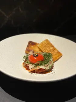 🤗 今晚相约老友 “甘仔” 饭聚, 初访位于上环孖沙街嘅 Reveri, 楼面设一张L型八人吧枱, 望住开放式厨房, 另外两三张方枱, 点咗 Tasting Menu, $888+10%, 五道菜, 配酒三杯, $548+10%.🐂 Beef and Shiso Tartare. 调味不俗.🦐 Japanese Ama Ebi. 甜虾他他, 属屈机菜式, 可惜麻油重手咗.🧀 Truffle Brioche. 甜西多士配芝士碎, 有点惊喜.🍅 Tomato and Burrata Salad. 真系用嚟清下口, 普普通通.🦞 Lobster Risotto, 另加$98. 冇乜惊喜, 而且咸咗少少.🐂 Hay Smoked Ribeye. “甘仔” 话有烟熏味, 我觉得好弱, 服务员建议三成熟, 肉质口感偏嫩, 合格吧.🍨 Caramel Custard Pudding with Lemon Honey Sorbet. 一个没有印象嘅甜品.🤗 总结: 地方老远, 定价有少少优势. 菜式相对普通, 完成度有待改进.…查看更多