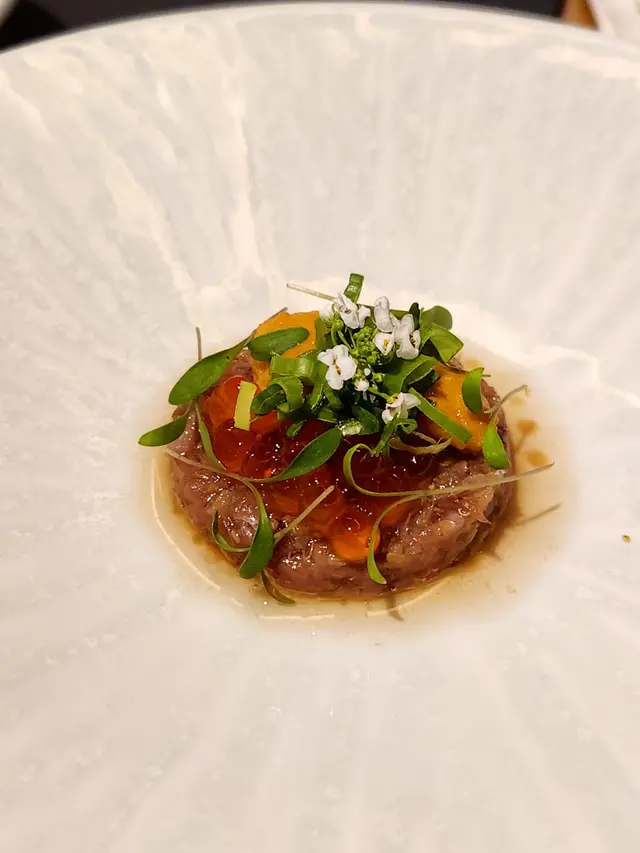 🤗 今晚相約老友 “甘仔” 飯聚, 初訪位於上環孖沙街嘅 Reveri, 樓面設一張L型八人吧枱, 望住開放式廚房, 另外兩三張方枱, 點咗 Tasting Menu, $888+10%, 五道菜, 配酒三杯, $548+10%.🐂 Beef and Shiso Tartare. 調味不俗.🦐 Japanese Ama Ebi. 甜蝦他他, 屬屈機菜式, 可惜麻油重手咗.🧀 Truffle Brioche. 甜西多士配芝士碎, 有點驚喜.🍅 Tomato and Burrata Salad. 真係用嚟清下口, 普普通通.🦞 Lobster Risotto, 另加$98. 冇乜驚喜, 而且鹹咗少少.🐂 Hay Smoked Ribeye. “甘仔” 話有煙燻味, 我覺得好弱, 服務員建議三成熟, 肉質口感偏嫩, 合格吧.🍨 Caramel Custard Pudding with Lemon Honey Sorbet. 一個沒有印象嘅甜品.🤗 總結: 地方老遠, 定價有少少優勢. 菜式相對普通, 完成度有待改進.…查看更多