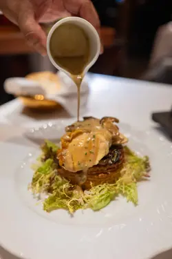 隐藏于中环One Chinachem地库✨装修充满格调又带点神秘感嚟到试咗佢地出名嘅牛扒🥩估唔到其他菜式都有惊喜💗❀ In-House Appetiser 🐟当日系鲭鱼刺身配牛油果蓉及蕃茄啫喱 ❀ Cadoret “Perle Noire" N3 Oyster 🦪生蚝肥美鲜甜 带阵阵咸鲜味❀ Pâté en Croûte 🥧法式酥皮肉批外层酥脆入面由猪肉、鸭肉及鸭肝制成肉冻蘸上酸酸甜甜嘅果酱好开胃呢😚❀ French Onion Soup 🧅法式洋葱汤入口浓郁以焦糖化洋葱及牛肉高汤等熬制而成表面铺上香脆面包及烤焗芝士芝士呈拉丝效果 非常焦香🥰❀ Tiger Prawns & Yunnan Mushrooms Vol-Au-Vent 🦐用酥皮盒盛载住虎虾及云南野菌 卖相吸引 外皮好脆口✨虎虾及菇菌新鲜爽脆淋上蘑菇酱汁香浓惹味❤️❀ O'Connor M5 Black Angus - Tenderloin 🐮澳洲M5安格斯牛柳肉质软嫩多汁外层微微炭香 蘸上黑椒酱汁更加滋味😍❀ Apple Tarte Fine (for two) 🍎苹果挞烤至薄脆表面铺上一层层苹果薄片配上云呢拿雪糕 冷热交融 层次感丰富😆❀ Paris-Brest Chou Puff 🥧榛子忌廉法式泡芙配榛子雪糕坚果味浓厚香甜 食得好满足🥰❀ Homemade Chocolate Cake 🍰最后送上迷你朱古力蛋糕作结~…查看更多