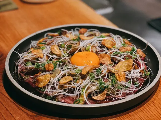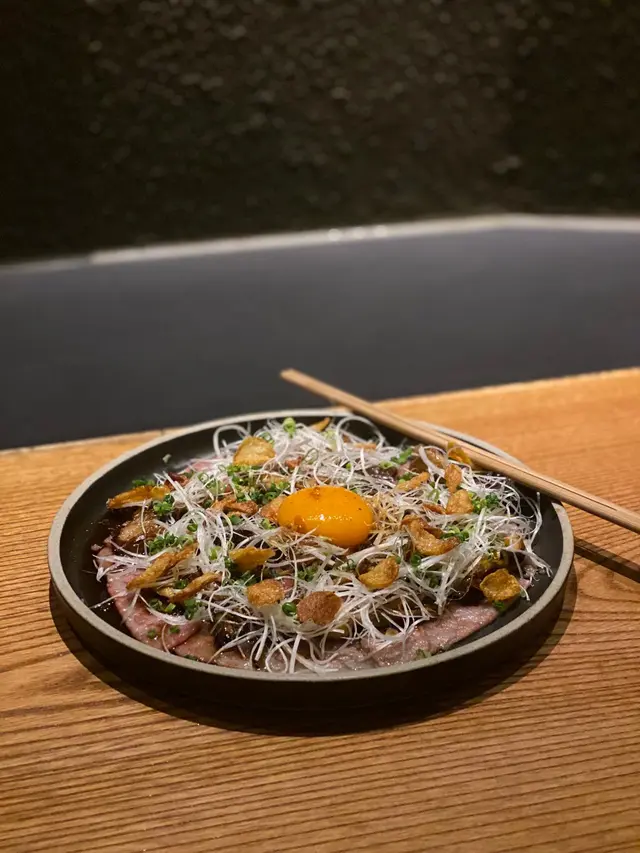 曾经的亚洲Best 50,但现在似乎被同一team的Yardbird盖过了名气。想订隔壁的大班楼屡战屡败,一不甘心来看了下Ronin,没想到订位毫不费力。·当然,吃完也就明白了为什么这么好订,只有招牌菜寿喜烧生牛肉惊艳,其它吃完没有太多记忆点。没兴趣点别的了,出来还另找地方续摊。整体感受是好的,但就是觉得有点不值这个人均。·还觉得Ronin定位有点尴尬,如果是fusion西式日料,有性价比更高、菜品更丰富的选择,不至于近千的人均,如果是omakase,HK的顶级日料似乎从来不嫌多,夹在中间的Ronin属于吃吃无妨。·刺身可以做half portion,这点比较贴心,本着多尝一点的心态点了三款,都已经调过味,毋需芥末和酱油,直接吃就行。味蕾在入口瞬间被蛋白质的鲜味交织着脂肪的丰腴深深冲击,回味甘美细腻。·Yellowtail Salad —— 黄尾鲷包裹着鲜嫩的舞茸和清新的水菜,几种不同口感的叠加强化出食材风味的深度和广度,一口好像把舌尖带去了山和海。·Kagoshima Beef Sukiyaki —— 就是冲着寿喜烧生牛肉来朝圣Ronin,虽然是日式的调味,但有借鉴洋风Carpaccio的灵感,如果只能在Ronin点一道菜,只能是这道菜。·切片极薄的鹿儿岛和牛,一夹起来好像要断裂的样子,但实则形散而神不散。特意做成了半生的熟度,脂肪纹路晶莹透亮,在灯光下透出略带挑逗性的诱人色泽。·澎湃的肉香在钻入口的刹那活了过来,一浪接一浪地往味蕾深处涌,入口即化却又回味悠长,缠绵着金灿灿的蛋液,如同一个热烈的法式舌吻。·环境、服务还是很有Best 50的质素,没啥可挑。一个印象比较深的细节是最后Chef出来跟我打招呼,看到他身上的纪念T恤衫才知道Yardbird已经10周年了,感叹什么呢,miss those good old times🫂…查看更多