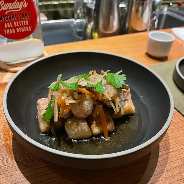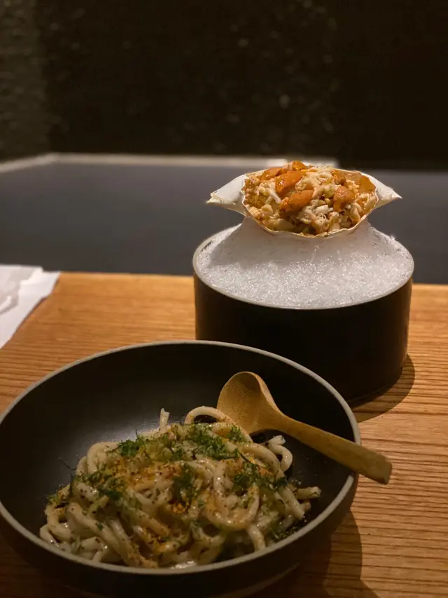 Finally got to try this hidden hot spot @ronin! It took me 5 minutes to find the entrance - if you plan on going here, book ahead because the limited seating makes it hard to get a reservation!We ordered the Flower crab with uni, Mitsuba, and sudachi; Kagoshima beef with negi, maitake, and sukiyaki egg yolk; Unagi chirashi with kinome, pickled cucumber, and sesame; and my favorite - Udon with clams, chorizo, and garlic scrapes. The portions were small, so I wouldn’t recommend coming here to fill up completely, but I definitely think it is a restaurant you should try out! Quality over quantity! ✨Ronin’s elegant ambience encourages intimate gathering while keeping things cozy.…查看更多