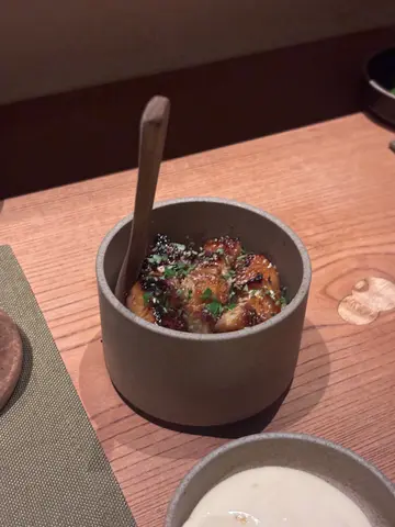 位于上环既小酒馆,无论系嘢食定酒都十分高质!✨虽然偏细份,但样样都精致,十分有心思🥰❣️Scallop Uni Miso Monaka海胆同带子都好鲜甜,入口新鲜冰凉,最中饼口感薄脆,有淡淡米香味。❣️Sardine Tartare, Crispy Potato卖相平平,入口有惊喜!沙甸鱼味好香,而且油脂丰腴,口感油润细腻。外面一层薯仔碎好香脆,令层次好丰富。❣️Yellow Tail Negi Soy Handroll𫚕鱼同葱花既完美融合,口感味道等等都平衡得好好,非常出色。❣️Snow Crab Spring Roll, Lily Bulb, Parmesan面头有大量巴马臣芝士碎,春卷皮炸得酥脆。❣️ Shrimp, Scallop, Aburage Tempura赠送既甜品,有啲甜但几好味✨总结:性价比实在不高,但食物quality唔错。同朋友相约小酌,边饮边食会系唔错既选择👍…查看更多