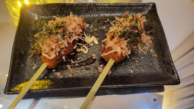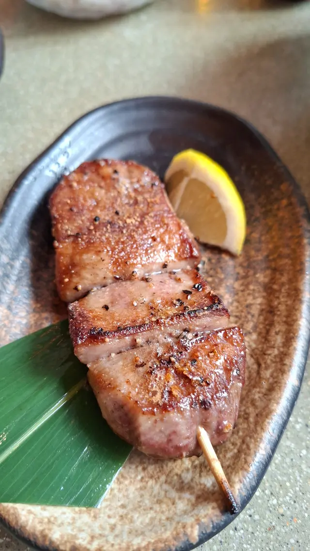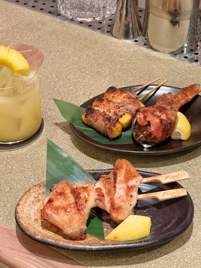 悠閒的星期六,最好就是約sister一起吃午餐& 到處逛街. 住在新界西的我,最喜歡就是到尖沙咀購物,半小時左右就由大西北來到尖沙咀,實在相當方便~這次我們選了一間裝潢相當時尚的居酒屋,享用我們的串燒午餐. 午市串燒2人前全單有75折,人均不用$300,以環境及地段來說,相當超值!!2款餐前小食吃串燒前,先送來2款前菜,擺盤精緻吸引~ 廚師精選沙律廚師沙律蔬菜相當爽脆,亦伴以新鮮生果,清新又美味!!吉列蠔即炸的吉列蠔炸粉薄薄的,外酥內軟滑,蠔肉juicy,相當美味😉味噌湯味噌湯熱度十足,亦很足料~日本豆腐以鹹香的木魚碎配以熱辣且嫩滑的日本豆腐,清新而美味!西班牙黑豚秋葵平時的我,最怕吃秋葵; 不過這款西班牙黑豚秋葵卻令我對這款蔬菜改觀~ 烤得香口惹味的黑豚肉,捲着乾身的秋葵 (內裡的黏液消失了),所以我覺得幾好吃😊免治雞肉棒配日本蛋雞肉棒juicy得來很有嚼勁,配以蛋汁,更為嫩滑~照燒雞肉鹹香的照燒汁,配以嫩滑雞肉,簡單的調味已經很滋味!雞中翼 (2隻)外皮烤得很香脆,內裡雞肉亦很嫩滑,擠上少許檸汁,更添清新~鹽燒鯖魚外皮烤得金黃香脆的鹽燒鯖魚,魚皮香脆,魚肉嫩滑,個人幾喜歡😊厚切牛舌以黑胡椒作調味的厚切牛舌,外皮微焦,肉質爽滑彈牙,真係相當有質素!!明太子翠肉瓜鹹香惹味的明太子醬,配以爽脆多汁的翠肉瓜,原來相當搭配~明太子醬冷烏冬松葉蟹柳配以明太子醬作調味,拌以嫩滑彈牙的冷烏冬,清爽美味!迷你蒜蓉牛油蟹肉天使麵鮮味蟹肉配以惹味的蒜蓉牛油汁,再伴已索滿汁的天使麵,已經很吸引~抹茶糯米糍飽滿的紅豆下是軟糯的抹茶糯米糍,軟綿綿的,甜度剛剛好,我真係好想食多一粒呀😉凍日本煎茶 & 芒果汁Sister選了無糖日本煎茶,有助消膩; 至於我則選了芒果汁,味道清新亦有淡淡芒果香,也不錯呢~個人很喜歡這間裝潢時尚的串燒居酒屋,與朋友在如此舒適的環境下,享用美味的日式串燒,這個周末我過得相當愉快😊…查看更多