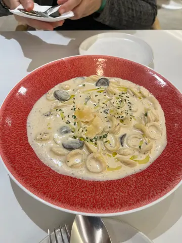 店名:Rosie地址:葵芳兴芳路177号葵芳广场地下18号舖今天刚好收工黎开葵芳附近,一直都见到地铁站附近有一间好特别嘅餐厅,今天终于有空试一下,Menu大部分都是Pasta 黎,爱Pasta迷必来1.巨头虾蒜香油天使面 $218打卡一流,虾头超大只,上菜时摆放得好靓,虾头有虾膏,虾肉弹牙,天使面配上蒜香油,好惹味,好好食🤤🤤2.龙虾浓汤蟹肉带子面 $198龙虾浓汤好浓郁,配上蟹肉带子好邪恶😈,但味道真的不错,面条搭配上龙虾汤跟蟹肉搭配,好正👍主食可以小食,加了二个小食,一个是炸薯条配黑松露蛋黄酱$20,另一个是忌廉菠菜$20,薯条炸得好脆口,配上黑松露蛋黄酱或茄汁,好满足;另一个忌廉菠菜要小心热,因为是即焗,但热辣辣食又好正3.自家制提拉米苏$88提拉米苏好食,店家是将整盆提拉米苏拿出来,再拿一个大匙放在碟上,好有仪式感食完发现店家有认真做好每碟意大利粉,价格又亲民 ,有别于连锁店意粉总价连加一$598…查看更多
