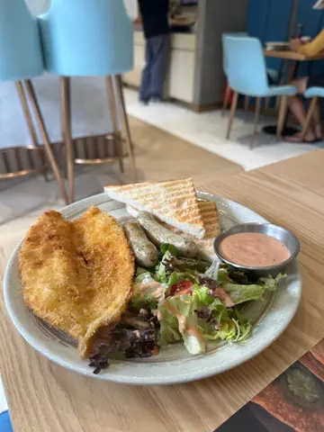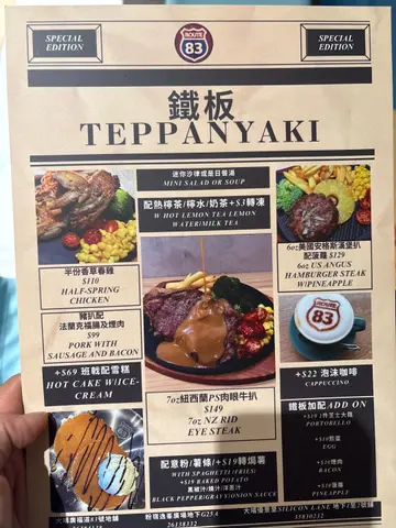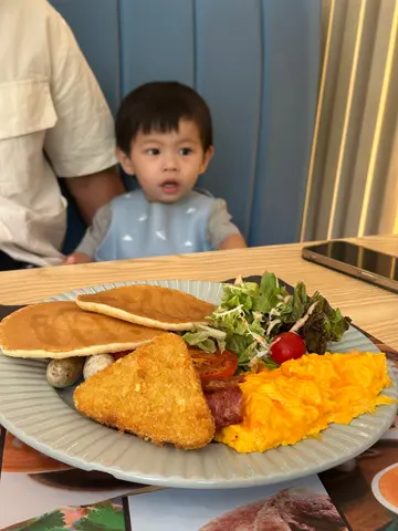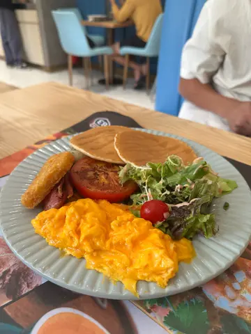 Route 83门面用咗欧陆风嘅蓝色为主调,店外都有几个座位,可以坐低叹杯咖啡,令人非常放松。附近有好多泊车位,假期揸车过嚟食个靓早餐都冇问题。早餐嘅选择唔算好多,但系价钱好亲民,性价比好高。🍽️ All Day Breakfast 早餐拼盘非常丰富,有炒蛋、烟肉、番茄、薯饼、pancake同田园沙律,炒蛋奶油味好香,口感超级滑,烟肉香脆,松饼外脆内软,薯饼即叫即炸,外层炸到脆卜卜,但入边嘅薯仔好实心,唔会一咬就散,口感丰富,几有惊喜!Add on 加咗个蕃茄汤长通粉,加只煎蛋系面非常居家早餐feel,长通粉弹牙爽口,加埋酸酸甜甜嘅蕃茄汤,好入味。☕️Ice Coffee咖啡味道醇厚,奶味香浓,冰凉口感简直系炎热早上嘅醒神恩物。☕️Ice Caramel Chocolate 甜度啱啱好,上面仲有厚厚嘅奶油,好creamy!值得一赞嘅餐厅员工非常友善,而且系kids friendly嘅餐厅,令用餐体验变得更愉快。Route 83 📍大埔白石角优景里63号Silicon Lane地下1-2号舖…查看更多
