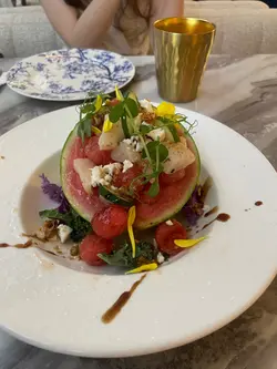 今次嚟到铜锣湾ROYAL INN,餐厅主打创新法国菜同埋西餐。餐厅装潢以欧陆宫廷风格为主,精致仿巴黎凯旋门嘅浮雕圆拱门,门口设置一座法式许愿池比人打卡,另外仲有古典水晶吊灯、花卉布置、天花镜面、法式藤椅、黑白格仔地板等,好优雅。餐厅内设有落地玻璃,有日光照射,景观开扬,舒适阔落。餐厅内更投影播放永恒女神柯德莉夏萍嘅电影,好经典。今次点咗ROYAL TEA SET,可以一边享受Afternoon Tea,一边望住维多利亚公园,感受法式休闲同埋氛围。🫖ROYAL TEA SET MENU☕️ 甜点 Exquisite Sweet开心果焦糖炖蛋迷你鲜果挞柑橘玛德莲贝壳蛋糕七彩马卡龙开心果焦糖炖蛋,口感细腻顺滑,开心果味浓郁;迷你鲜果挞有酸甜清新嘅士多啤梨同埋蓝莓,挞底口感酥脆;玛德莲贝壳蛋糕,蛋糕以贝壳形嘅外表,蛋糕香气四溢,入口蓬松,带有浓郁嘅奶油味道;七彩马卡龙,外酥内软,夹有香甜果酱,口感层次丰富。咸点 Savoury Canapés巴马火腿蜜瓜蕃茄肉丸英式小松饼鸭肝幕斯配无花果巴马火腿蜜瓜,咸香十足嘅Parma Ham,配上香甜爽脆嘅蜜瓜,带出平衡口感;蕃茄肉丸英式小松饼,肉丸口感软嫩,与蕃茄酱嘅酸甜融合,搭配口感松软嘅小松饼,口感层次丰富;鸭肝慕丝配无花果,鸭肝味道咸香,慕丝柔软细腻,无花果味道酸甜,好开胃。海鲜小点心 Seafood canapés龙虾牛油面包煎虾蛋沙律多士北海道刺身带子薄片龙虾牛油面包,龙虾肉口感鲜嫩,配上口感酥脆嘅牛油面包,好满足;煎虾蛋沙律多士,香煎虾仁口感弹牙,加上蛋沙律好醒胃,多士口感酥脆;北海道刺身带子薄片,带子刺身嫩滑鲜甜,配上味道咸鲜嘅三文鱼籽,口感丰富。MightyLeaf TeaTea选择咗White Orchard 白桃果园,白桃口味清新,入口滑顺,带有白桃甘甜同埋茶嘅香醇嘅味道。…Read More